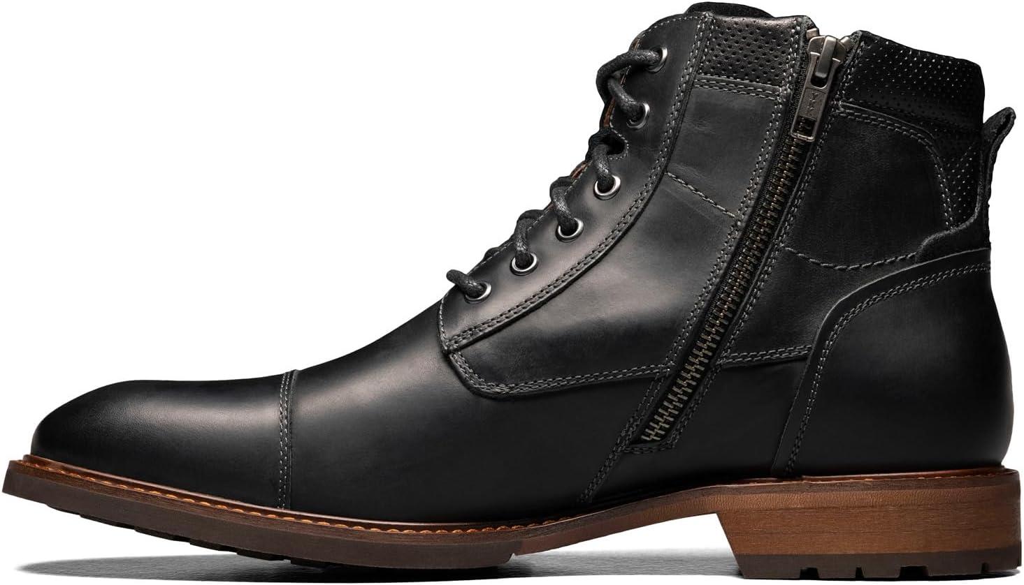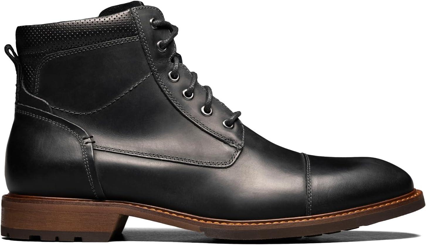 Looking for a boot you can wear to the office and a weekend around town? The Florsheim Lodge Cap Toe Lace Boot is the answer. Its versatile design features a mixed material upper with subtle stitching details and a modern stacked heel. With dress pants or jeans, this boot will spend little time in your closet.
