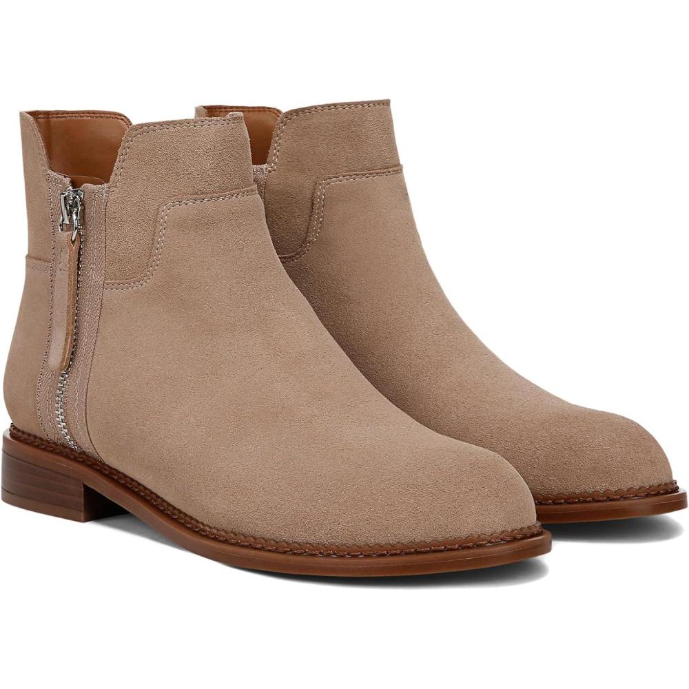 Take a memorable walk in the spotlight styling Franco Sarto Halford Booties, where moto-chic meets modern flair. Crafted from a luxurious blend of suede and leather, these ankle-high booties exude sophistication with their pointed toe and edgy moto-inspired exposed zippers. The PU lining and insole ensure all-day comfort, while the synthetic rubber outsole offers durable traction. A side zippered closure provides effortless on-and-off convenience, and the round toe and top-stitched welt add a touch of classic design.