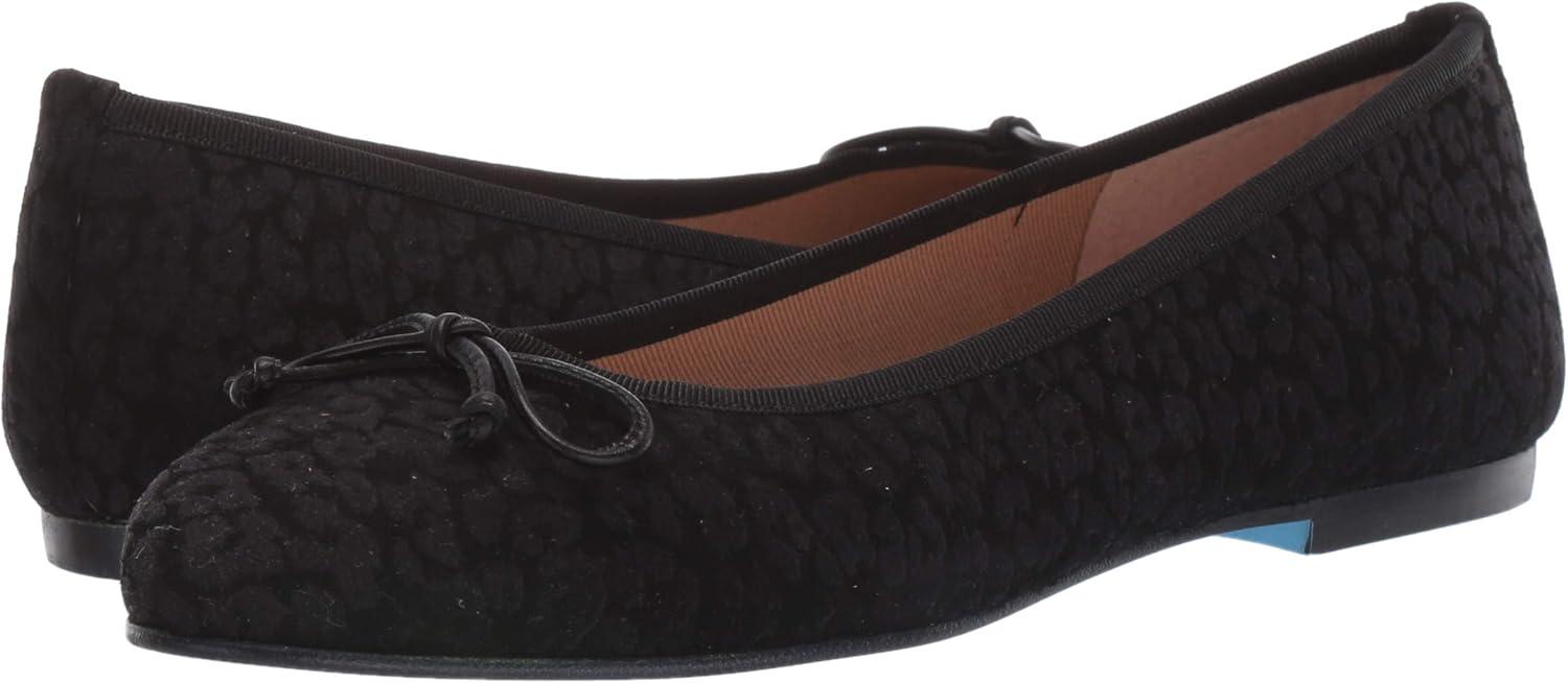 A timeless design, charming bow accent along the instep, and allover animal print give the French Sole Nicky Hilton- Paris ballet flat a feminine aesthetic with fiercely-chic appeal. Part of the Nicky Hilton x French Sole collection. Suede upper features an allover animal print. Slip-on construction. Rounded toe. Breathable leather and textile lining. Cushioned footbed lends to added comfort. Mini stacked heel. Leather outsole flaunts signature blue colorway. Made in Spain.