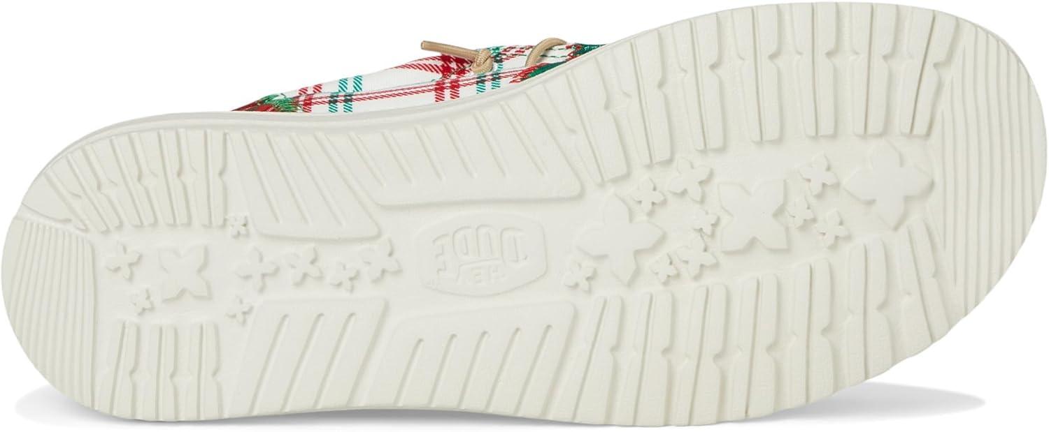 Get ready to step up your style game choosing these Hey Dude Wally Tri Tartan Plaid sneakers! The canvas upper features a trendy plaid pattern that's perfect for adding a pop of color to any outfit. With comfortable cotton lining and EVA insole, these sneakers are as cozy as they are stylish. Plus, the Flex & Fold design supports healthy feet by allowing complete freedom of movement. Whether you're running errands or hanging out with friends, these low-top sneakers are the perfect choice. Lightweight with elasticized laces on the front. Slip-on style. Branding on the tongue and back. Round toe design. Rubber outsole.