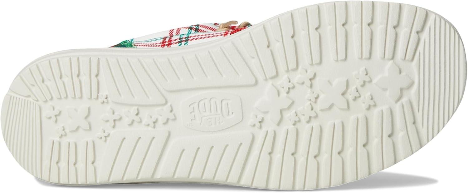 Get ready to step up your style game choosing these Hey Dude Wally Tri Tartan Plaid sneakers! The canvas upper features a trendy plaid pattern that's perfect for adding a pop of color to any outfit. With comfortable cotton lining and EVA insole, these sneakers are as cozy as they are stylish. Plus, the Flex & Fold design supports healthy feet by allowing complete freedom of movement. Whether you're running errands or hanging out with friends, these low-top sneakers are the perfect choice. Lightweight with elasticized laces on the front. Slip-on style. Branding on the tongue and back. Round toe design. Rubber outsole.