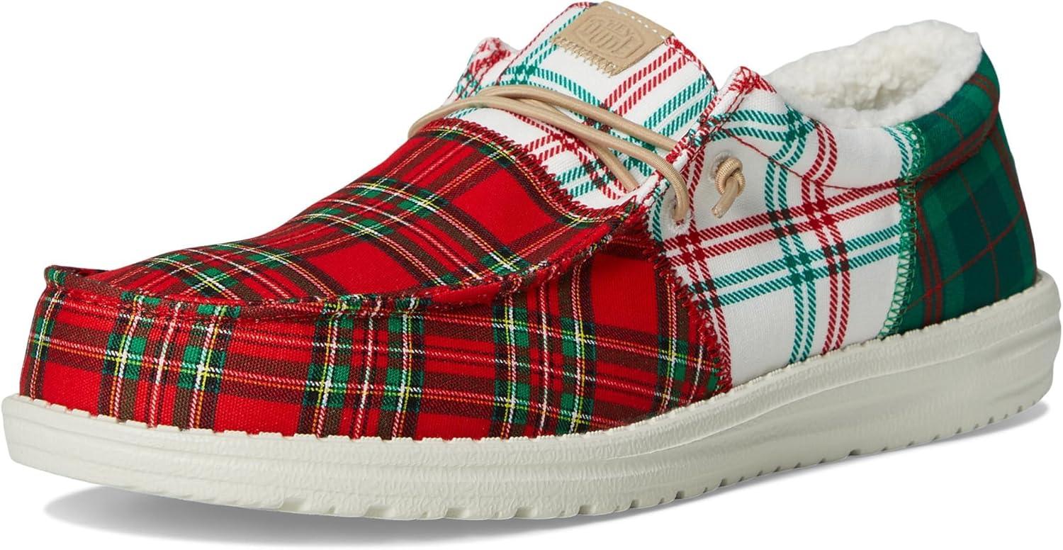 Hey Dude Men’s Wally Tri Tartan Plaid Loafer(Red/White/Green)