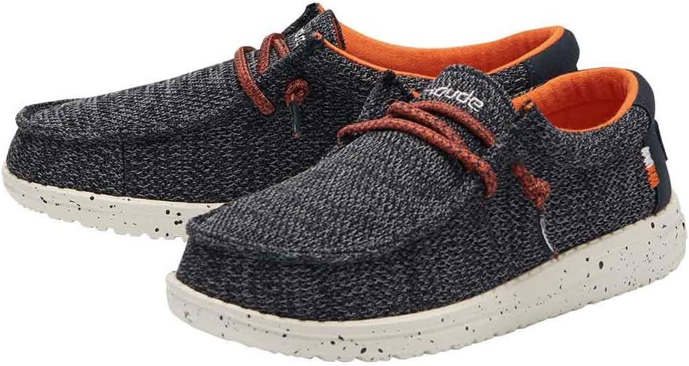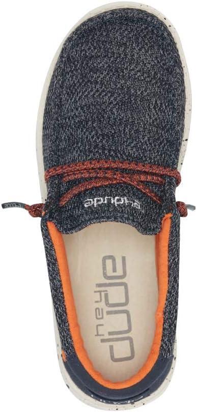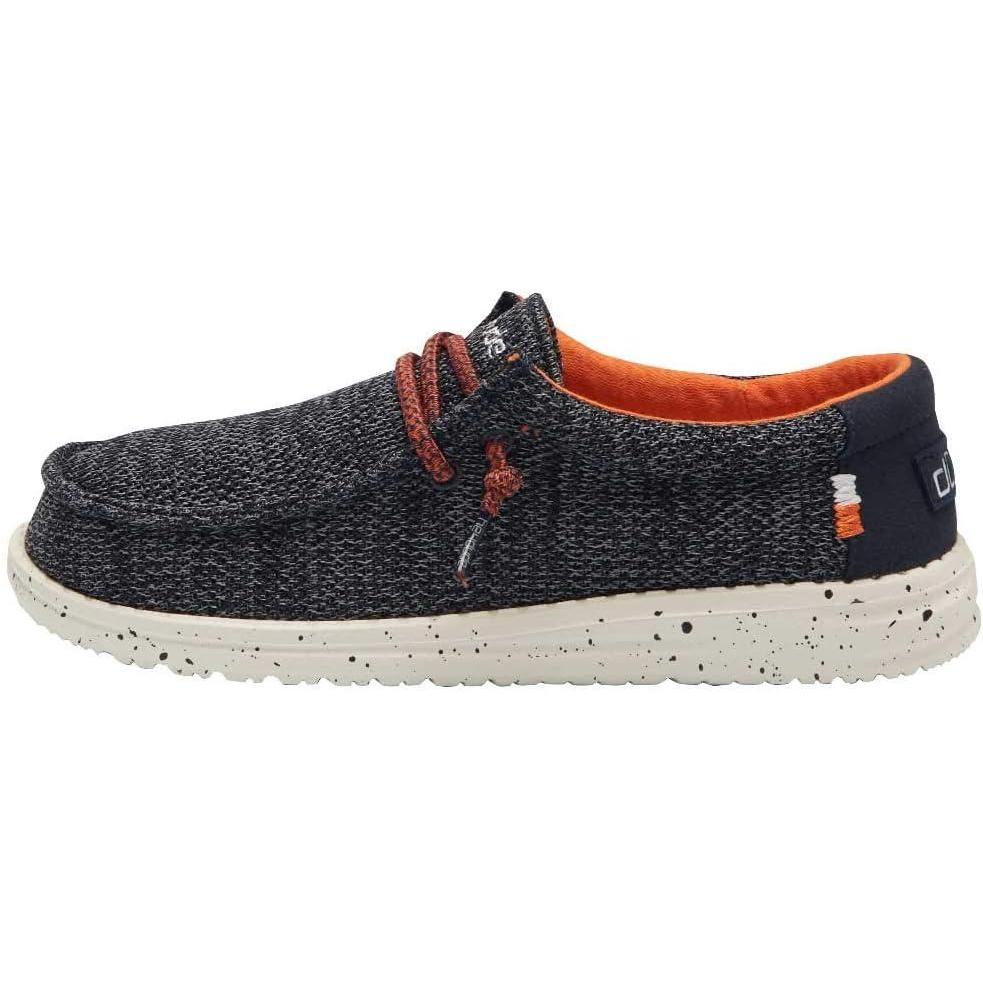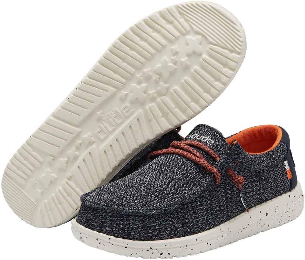Walk the path confidently by wearing Hey Dude Wally Sox Skater (Toddler/Little Kid/Big Kid) footwear. Textile upper. Textile lining. Removable, synthetic insole. Round toe. Bungee laces. Low top design. Textured pattern. Synthetic outsole.