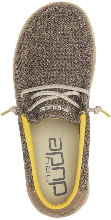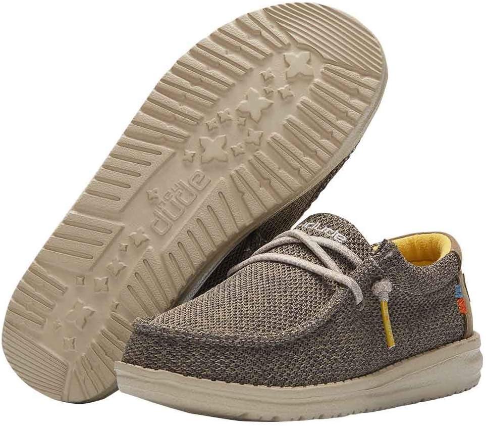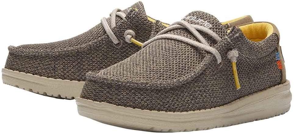 Walk the path confidently by wearing Hey Dude Wally Sox Skater (Toddler/Little Kid/Big Kid) footwear. Textile upper. Textile lining. Removable, synthetic insole. Round toe. Bungee laces. Low top design. Textured pattern. Synthetic outsole.