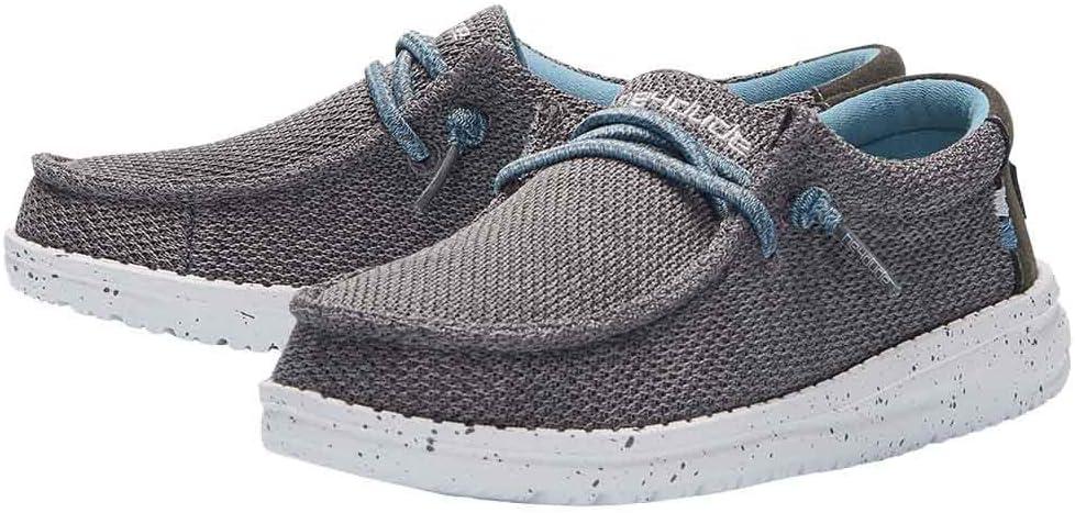 Walk the path confidently by wearing Hey Dude Wally Sox Skater (Toddler/Little Kid/Big Kid) footwear. Textile upper. Textile lining. Removable, synthetic insole. Round toe. Bungee laces. Low top design. Textured pattern. Synthetic outsole.