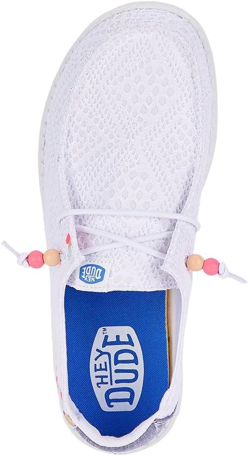 Hey Dude Wendy Boho Crochet Loafers for Women – Textile Upper & Lining – Lace-up Closure – Textile Outsole(White)