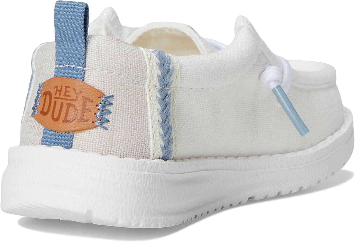 HEYDUDE Boy’s Wally Summer Linen (Toddler) Loafer(White/Stone Grey)