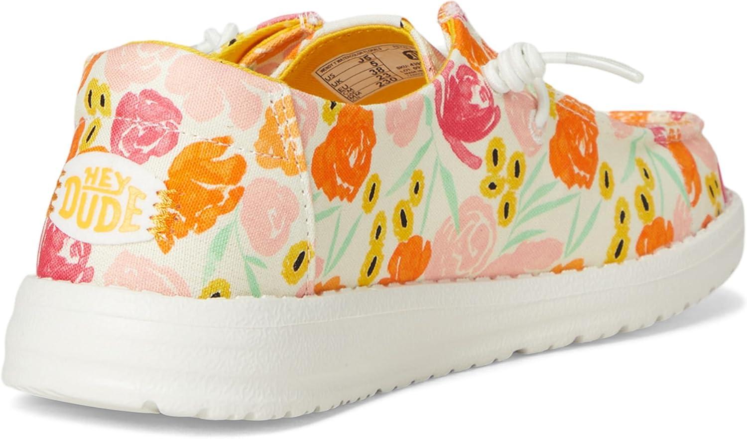 Featuring a Flex & Fold design that supports healthy feet with its unique shape, the Hey Dude Kids Wendy Mother's Day shoes add a colorful twist to your kid's outfit. The canvas upper of these shoes is styled with easy-on elastic laces for a secure fit. They are made of a cotton lining and removable EVA insole that provides go-to comfort. Designed with an allover floral print, these lace-up sneakers make a stylish addition to your kid's footwear collection. Round toe shape. EVA outsole.