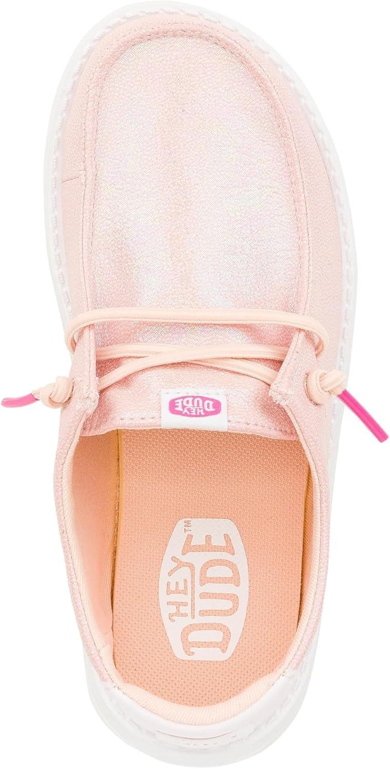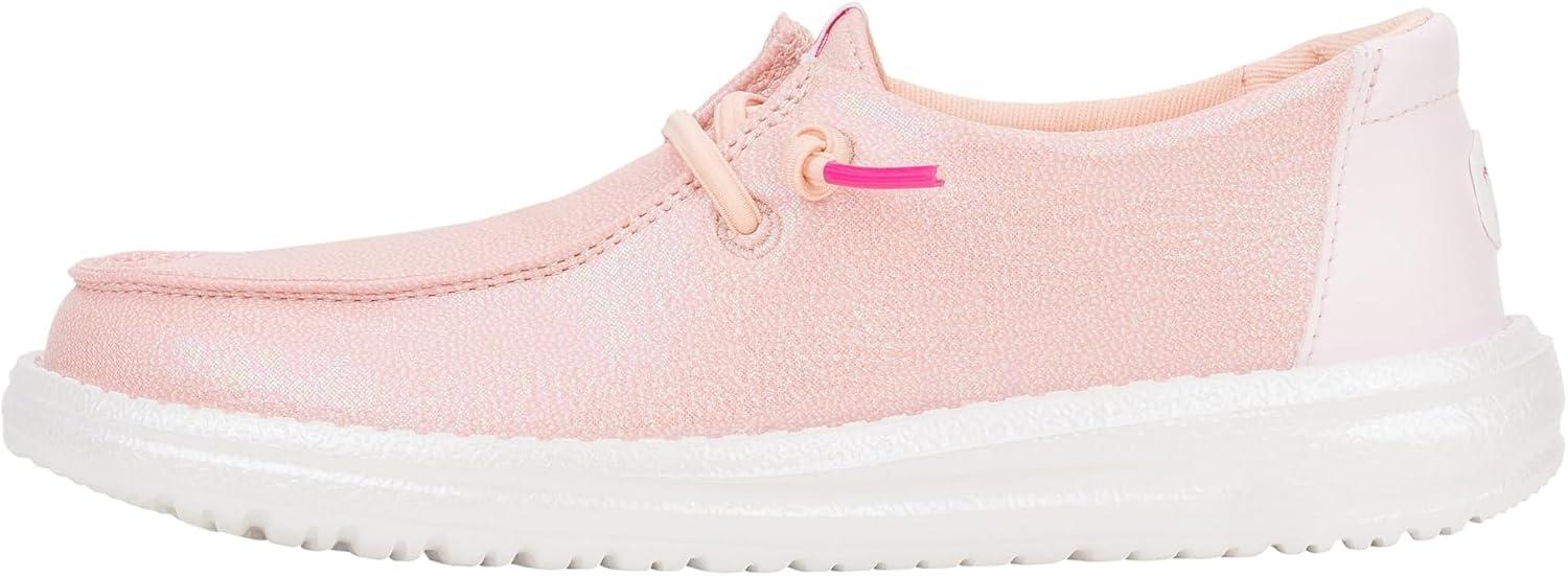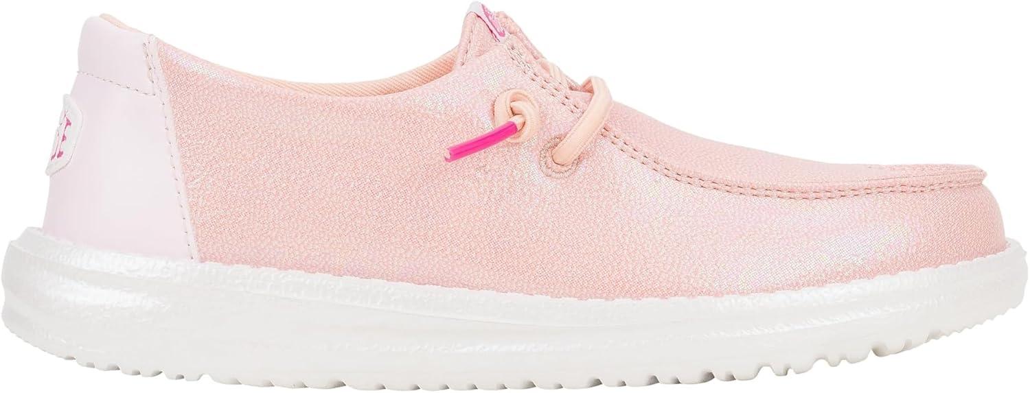 HEYDUDE Kids Wendy Iridescent Sparkle (Little Kid/Big Kid) – Loafers for Kids – Canvas Upper – Cotton Lining(Pink)