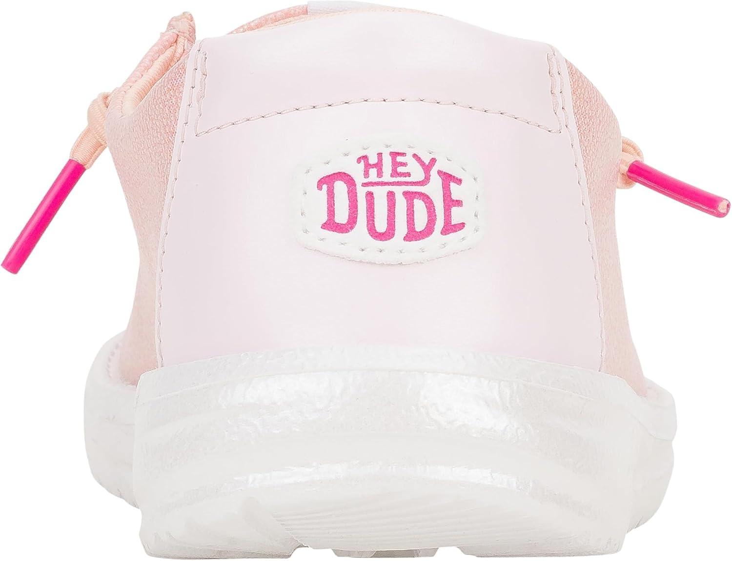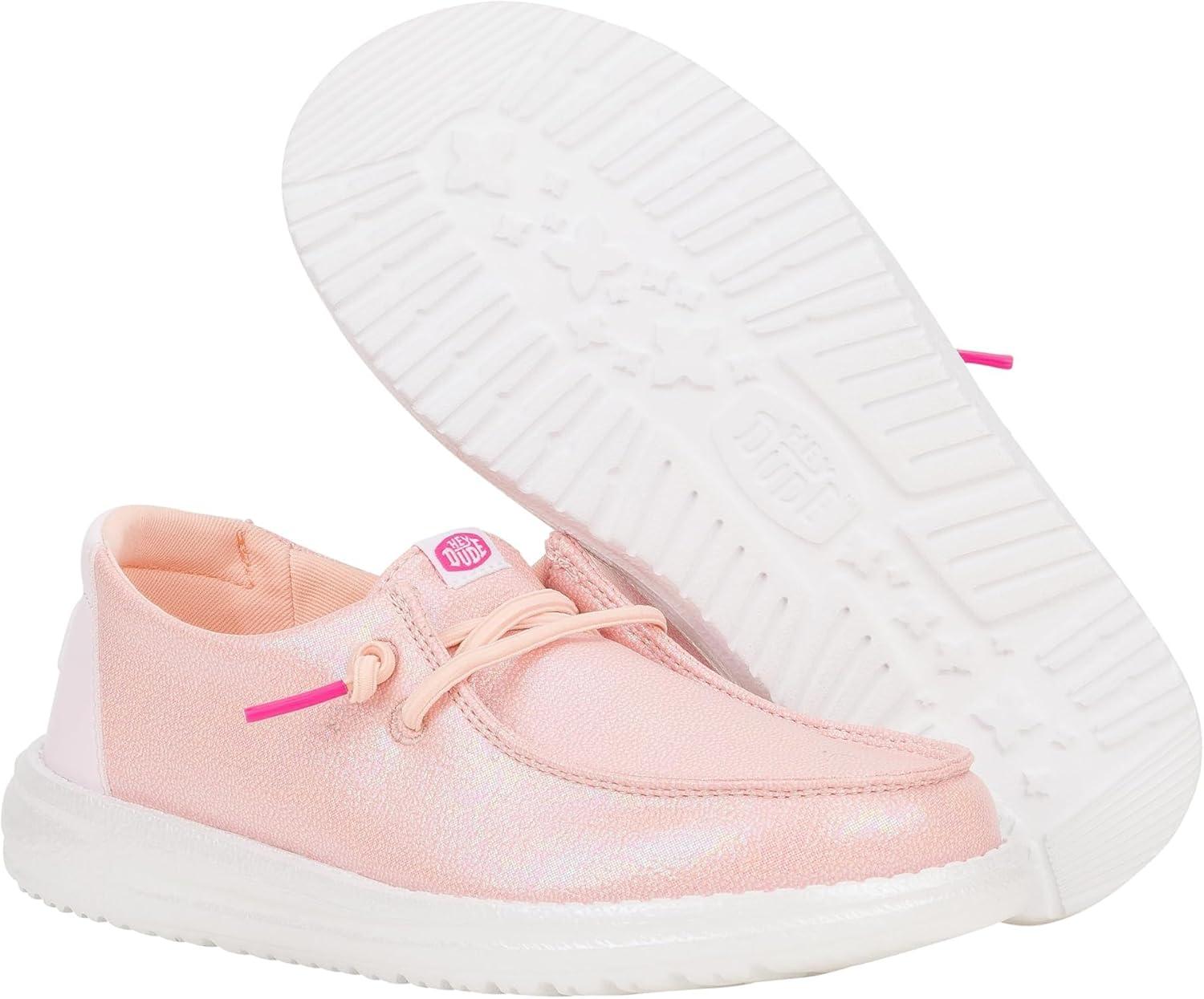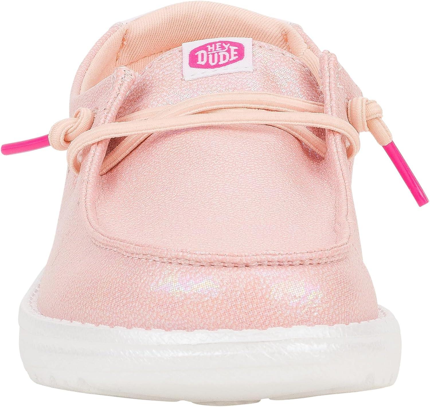 HEYDUDE Kids Wendy Iridescent Sparkle (Little Kid/Big Kid) – Loafers for Kids – Canvas Upper – Cotton Lining(Pink)