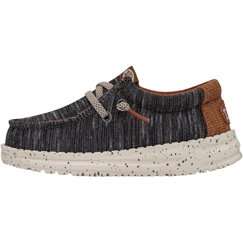 HEYDUDE Wally Kids Jersey | Kids Shoes | Lace Up Loafers | Comfortable & Light-Weight(Charcoal)