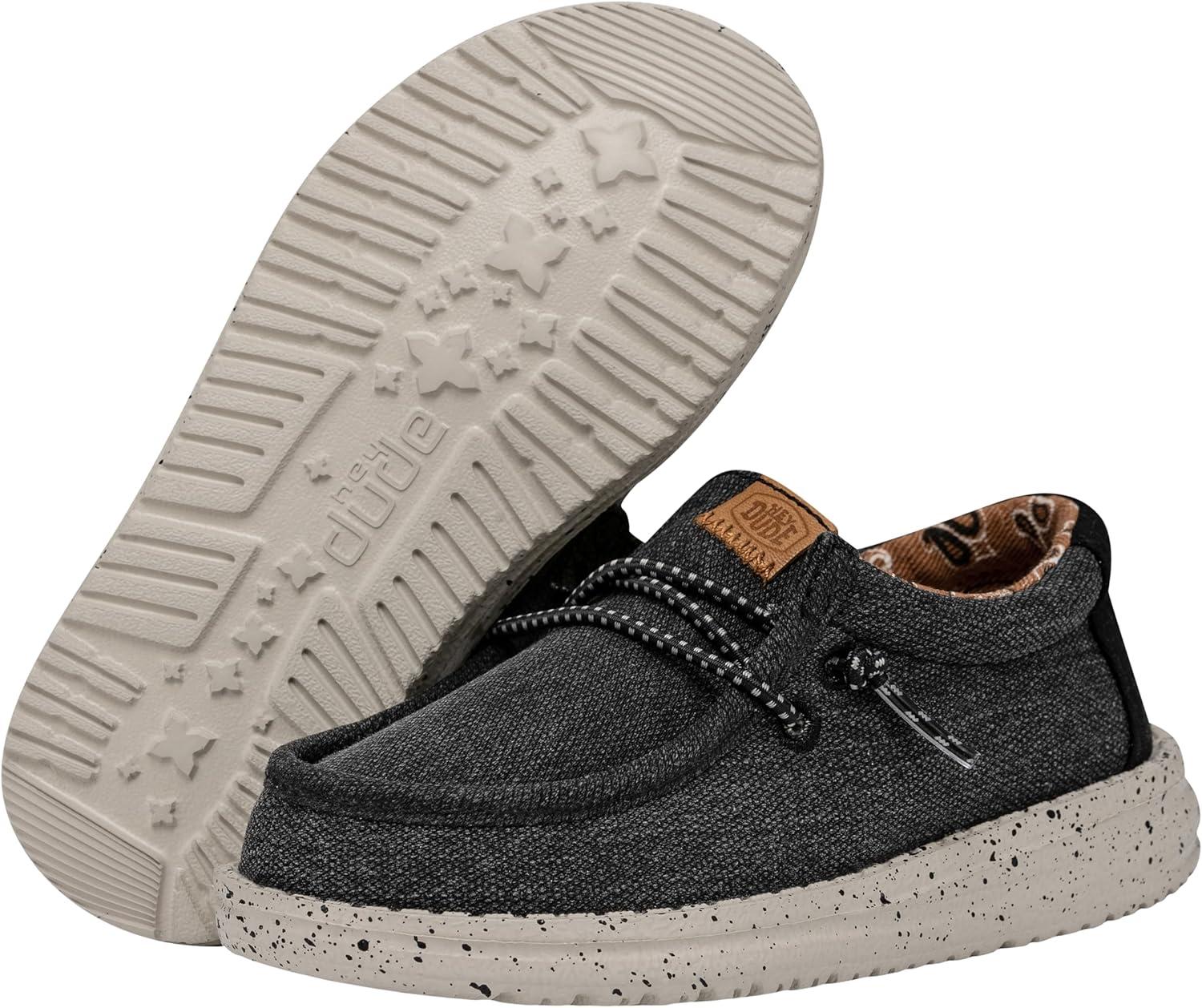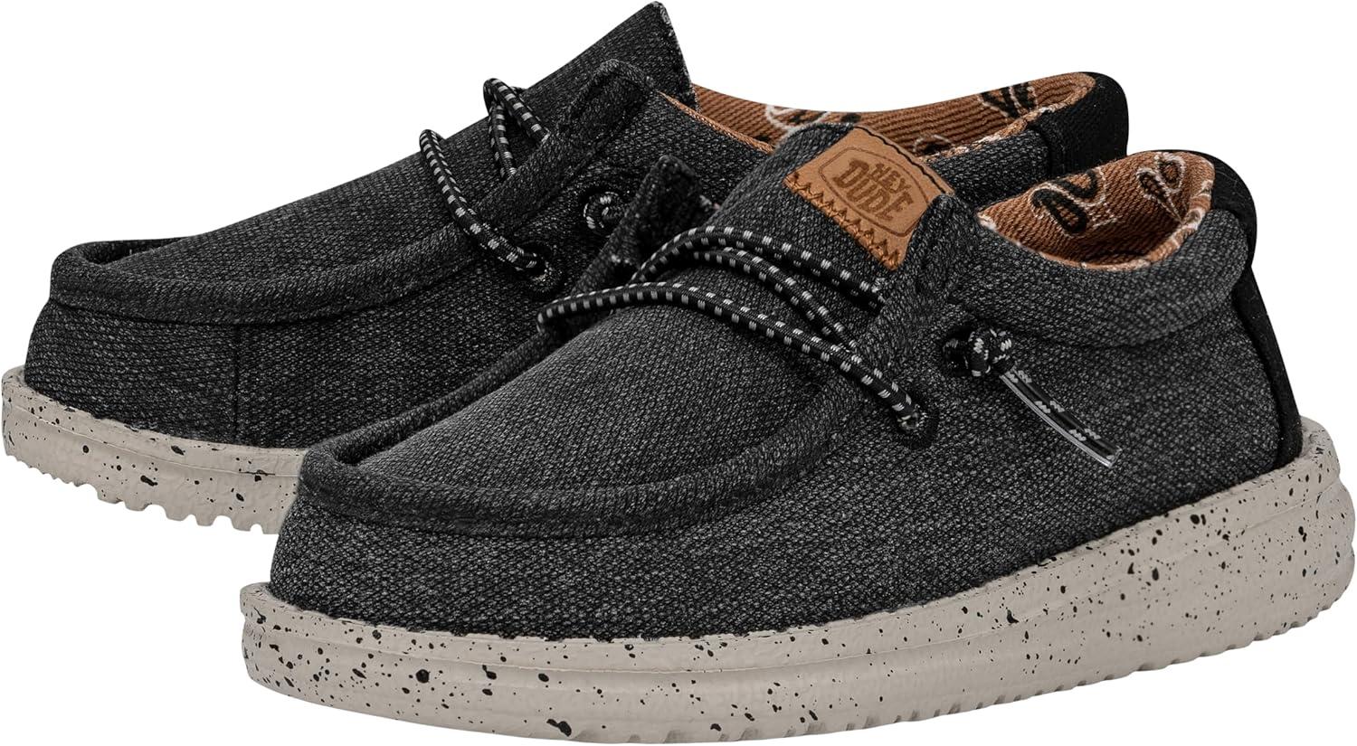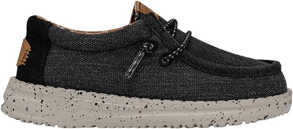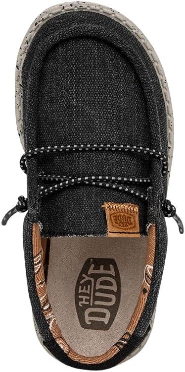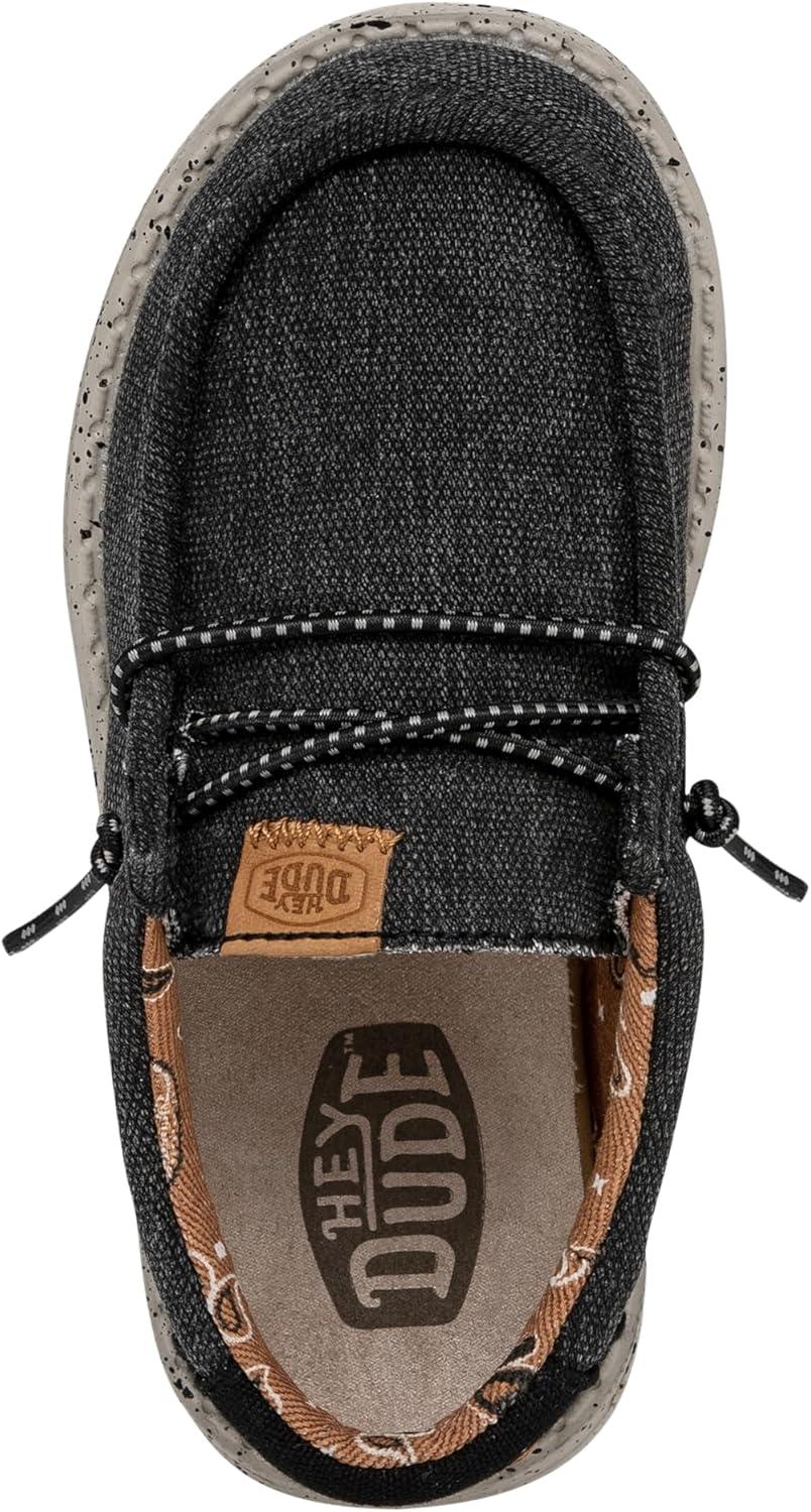 HEYDUDE Wally Toddler Washed Canvas | Boy’s Loafers | Boy’s Slip On Shoes | Comfortable & Light Weight(Black)