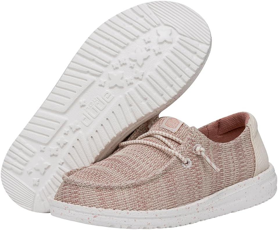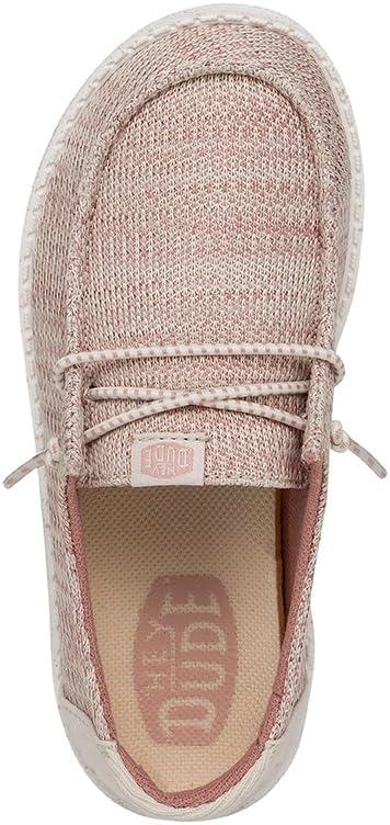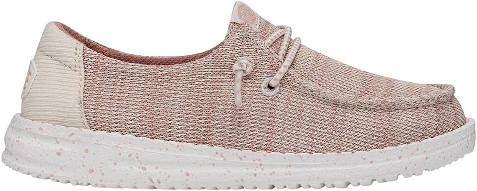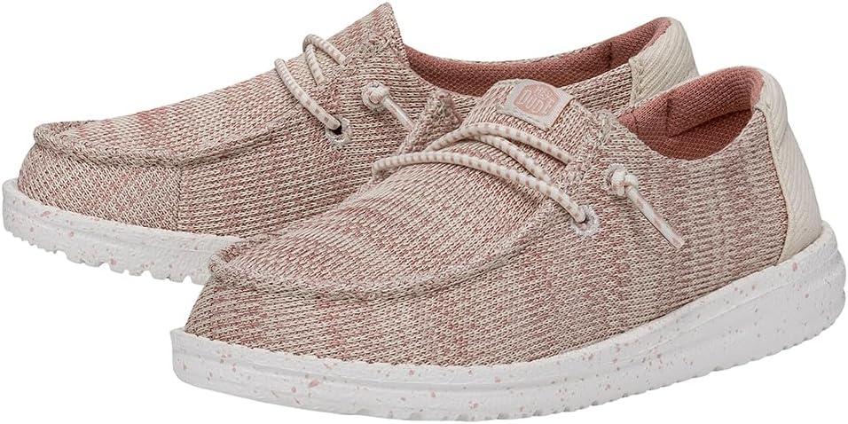 HEYDUDE Wendy Sport Mesh Loafers for Kids Girls – Textile Upper – Two-Eyelet Lace Closure – Slip-on Style(Light Pink)