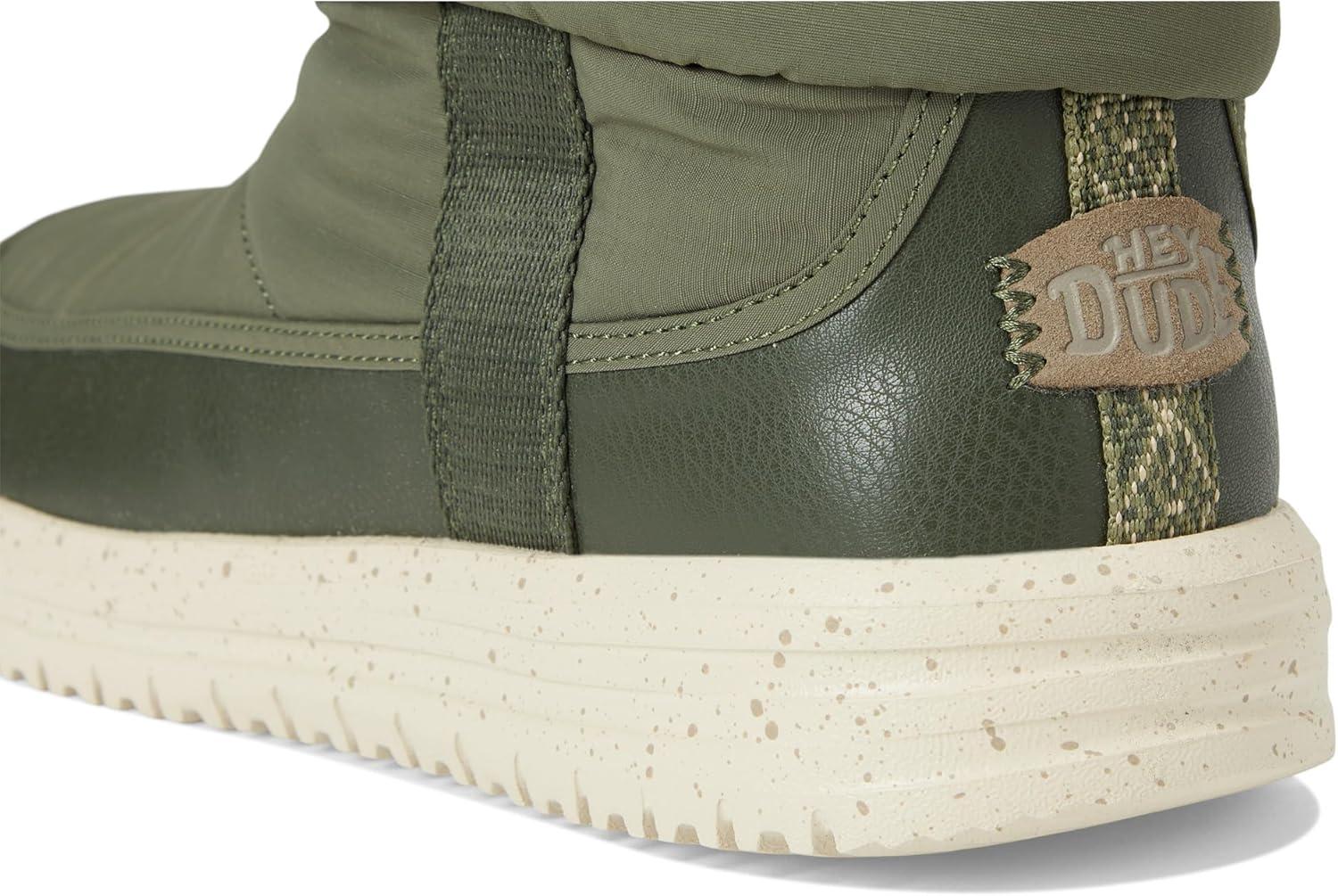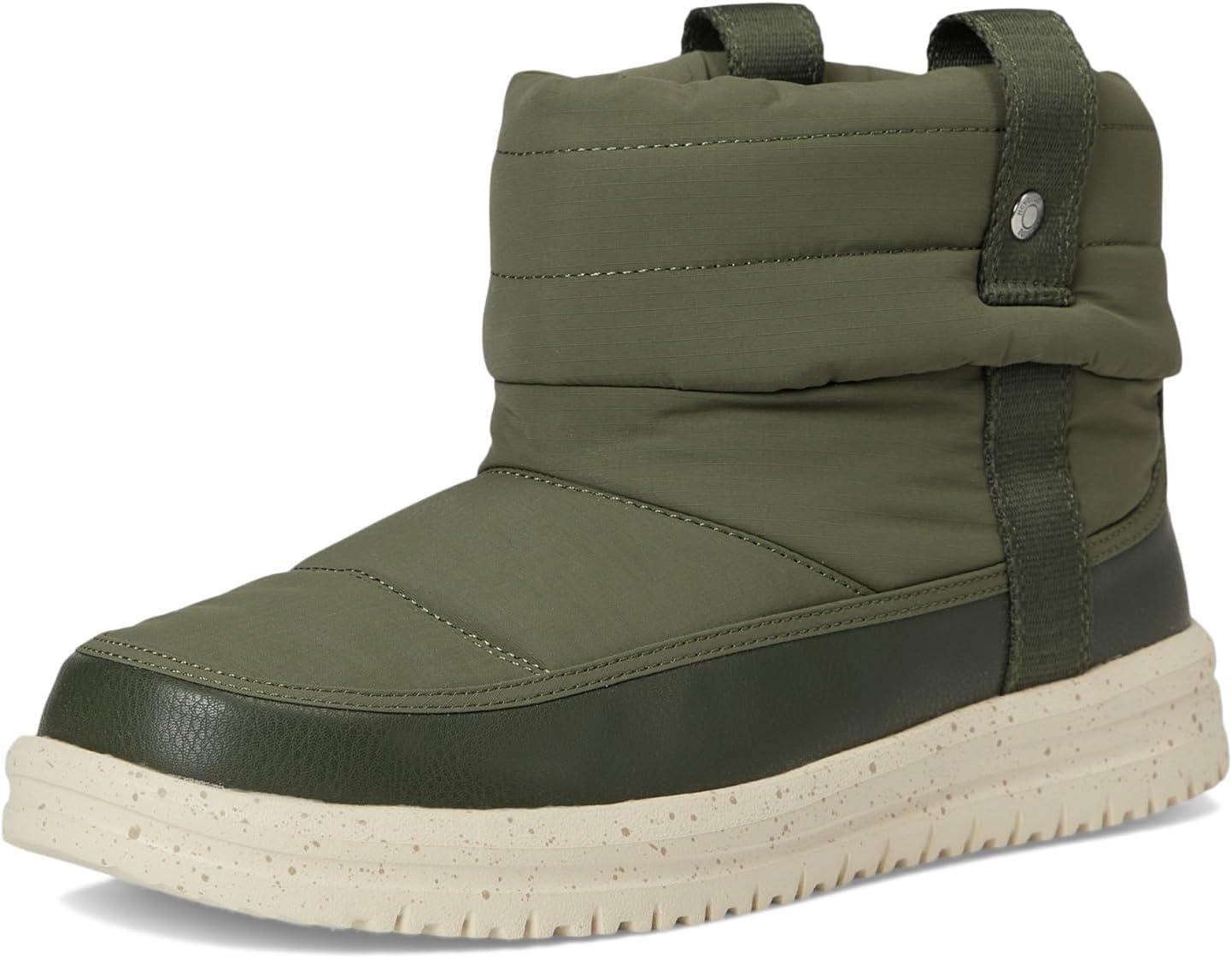 Keep your feet warm and comfy in the Hey Dude Camden Cuff Nylon Quilt Boots with an easy slip on system and step out looking fresh, whatever the weather puts you through. Water-resistant, premium leather uppers meet the lightweight, flexible rubber outsole for comfy, seasonal style. The faux shearling interior and easy on heel webbing loop add to the comfort. Round toe shape. Polyester lining. Polyurethane insole. Pull straps. Ankle-high boots.