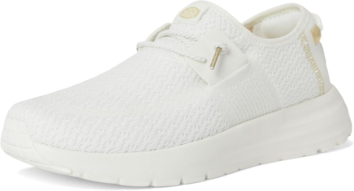 HEYDUDE Women’s Sirocco Crochet Mesh Loafer(White/Gold)