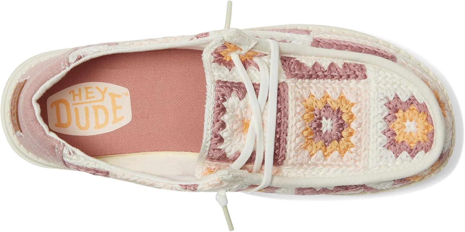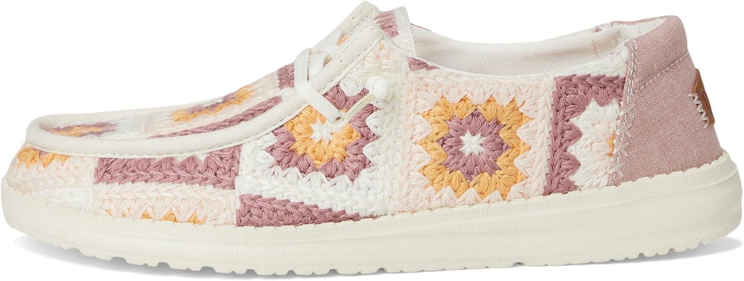HEYDUDE Women’s Wendy Cottage Crochet Loafer(Petal Pink/Multi)