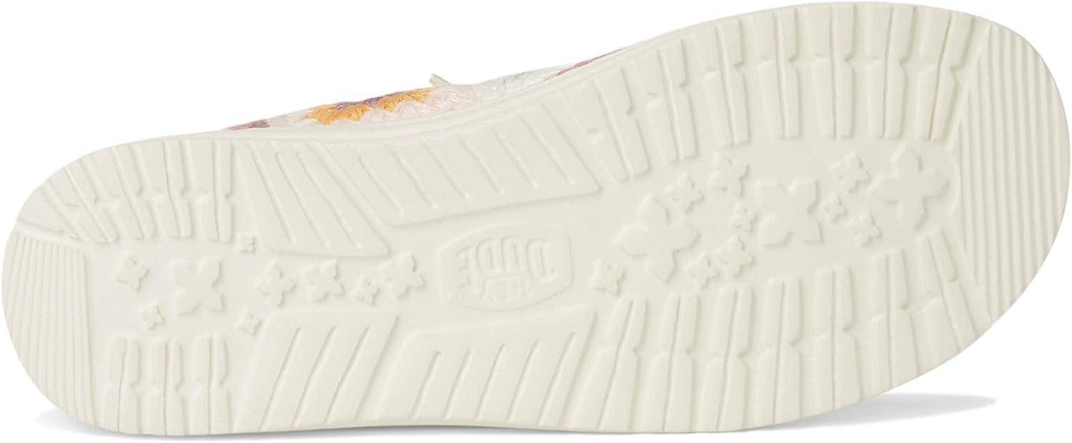 Introducing the Hey Dude Wendy Cottage Crochet sneakers, a dream for comfort and charm. An embroidered crochet upper wraps your foot in style, while a cushy, comfy removable EVA foam-filled insole keeps you in plush comfort. The cotton lining provides all-day comfort. These printed sneakers feature elastic laces for a secure fit and a Flex & Fold design that supports healthy feet. Grandma chic vibes meet easy-on, breezy bliss for the ultimate cottagecore dream. Round toe silhouette. Rubber outsole.