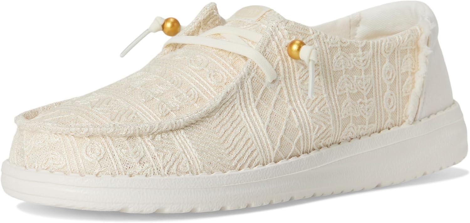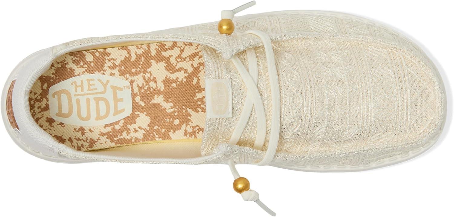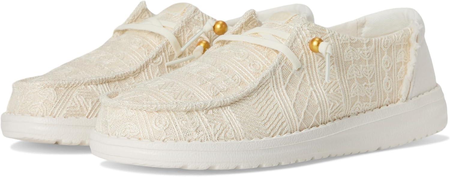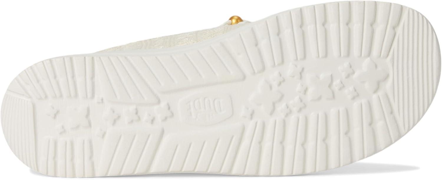 HEYDUDE Women’s Wendy Crochet Lace Loafer(White/Gold)