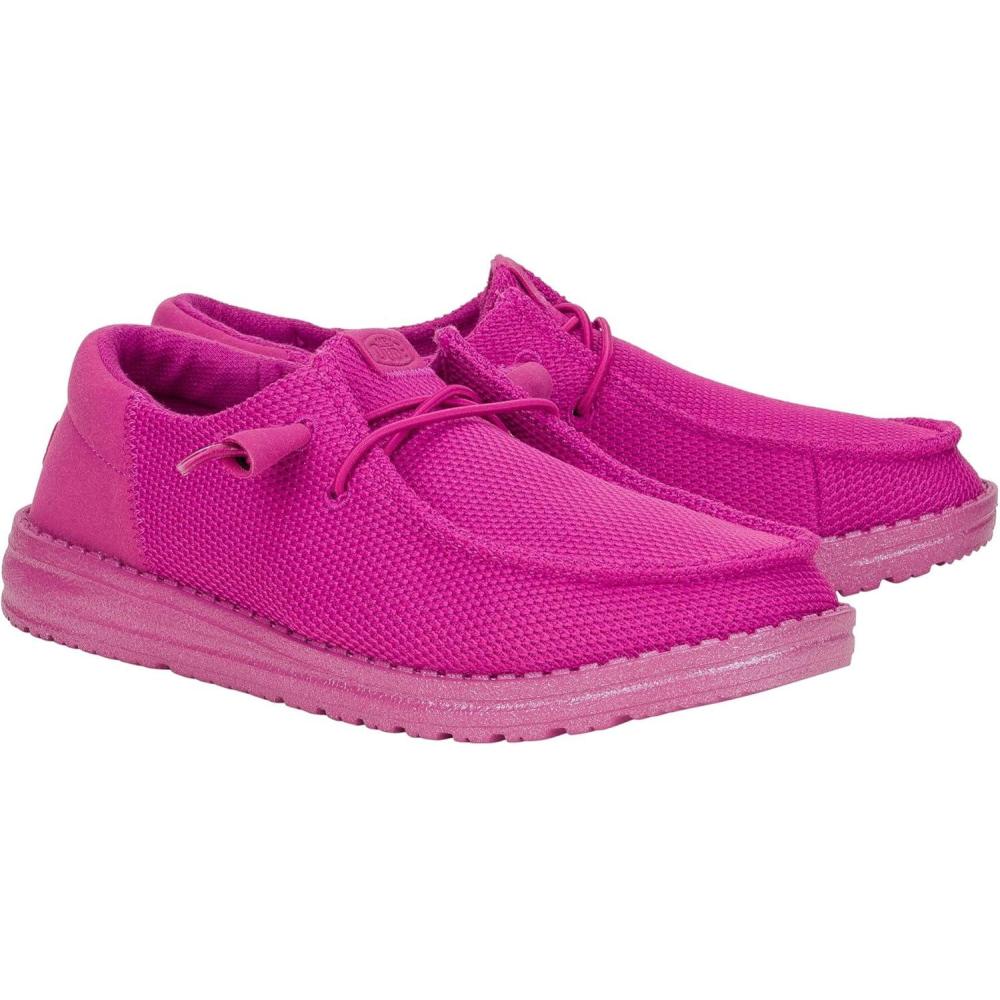 For the style savvy, there's the Hey Dude Wendy Funk Mono. Textile lining and upper. Removable foam insole. Elasticized lacing system. Flexible outsole. Moc toe silhouette.