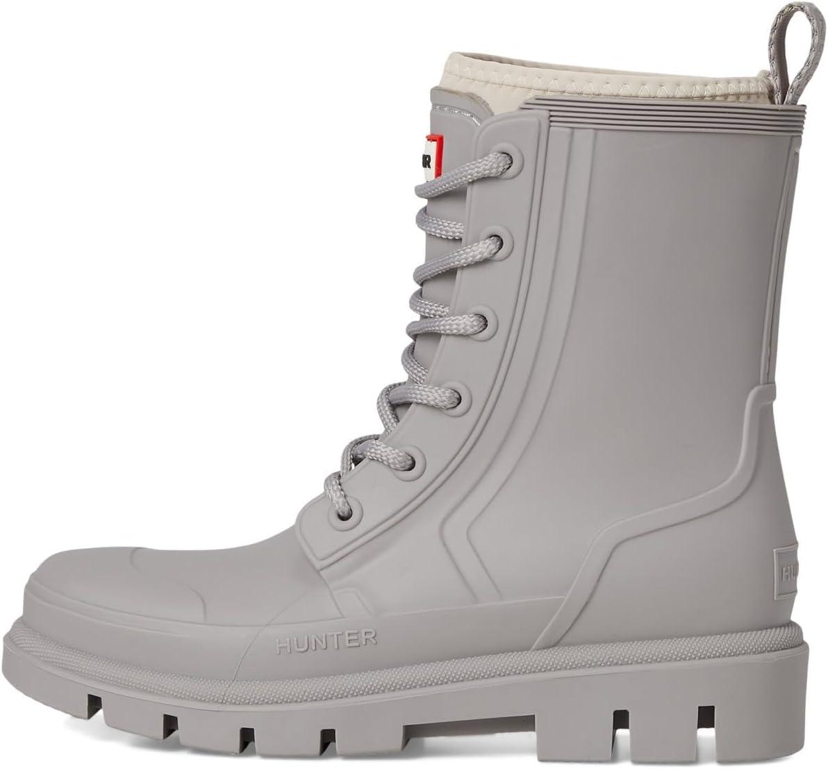 Ready for rain, the Hunter Diana boot is a sleek and stylish waterproof lace-up rain boot with a neoprene upper for style and functionality, complete with fully adjustable laces and a sturdy lug sole.