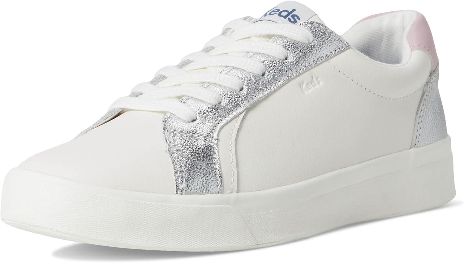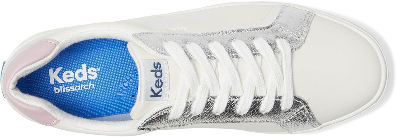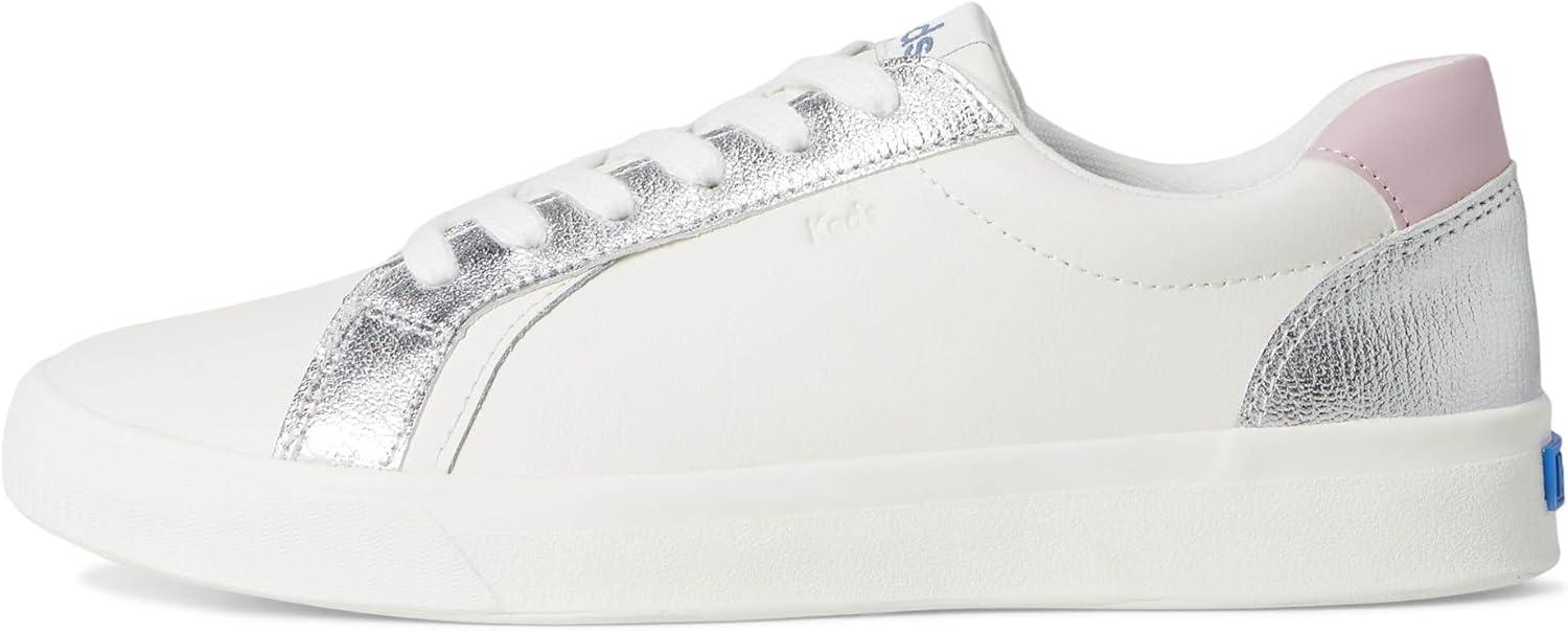 Keds womens Pursuit Lace Up(Snow White/Silver/Mauve Leather)