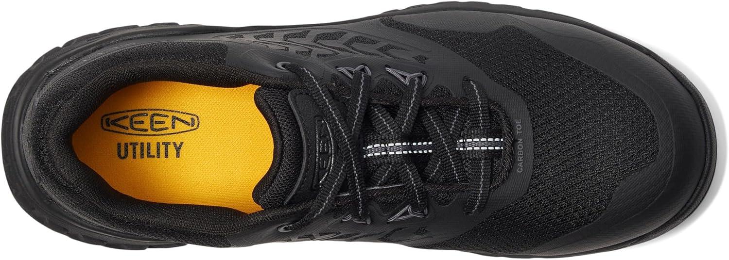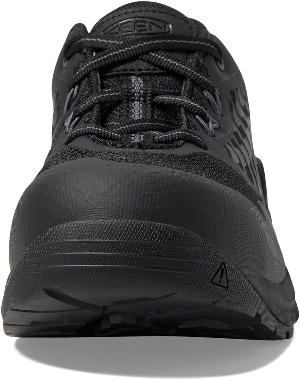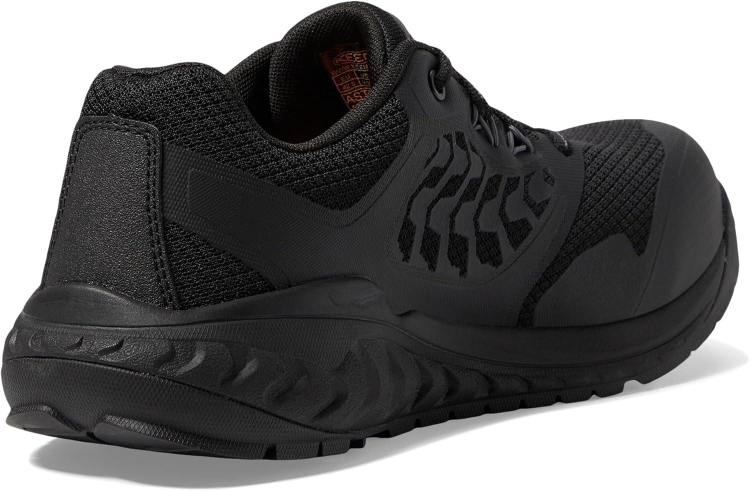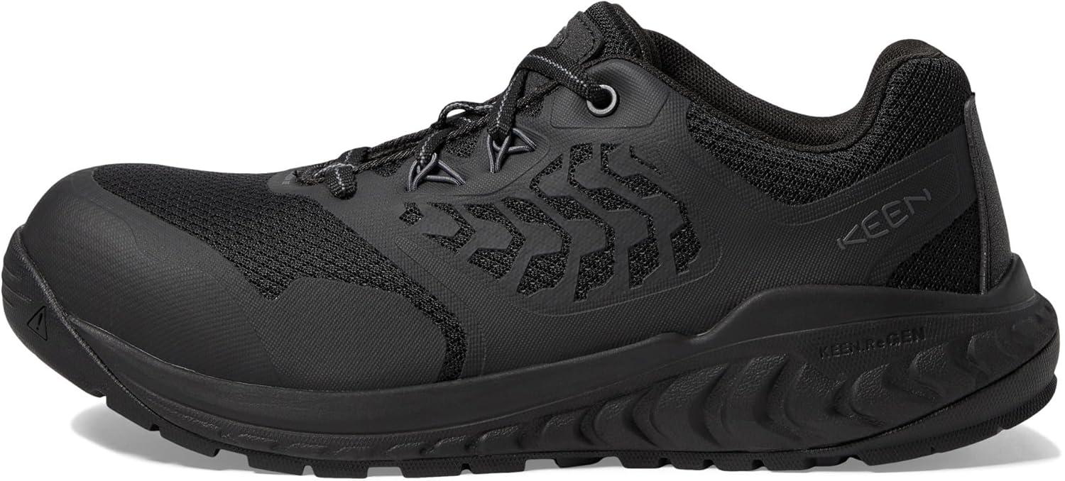 Elevate your footwear game with this KEEN Utility Cully Comp Toe. These sneakers feature abrasion-resistant synthetic upper, mesh lining provides breathability to help keep feet cool in warm environments, and elasticized lace-up closure. Removable metatomical PU footbed. Brand detailing on the tongue and footbed. Round toe design. Lightweight, compression-resisting midsole. Carbon safety toe meets or exceeds ASTM F2413-18 M I/75 C/75 EH standard. Cement outsole construction. Oil- and slip-resistant non-marking rubber outsole meets or exceeds ASTM F3445-21, ASTM F1677-96 Mark II and ASTM D471-06 903 chemical resistance rating. Style Number: 1028297(Black/Black), 1028296(Legion Blue/Gum), 1028295(Vapor/Steel Grey) Imported.