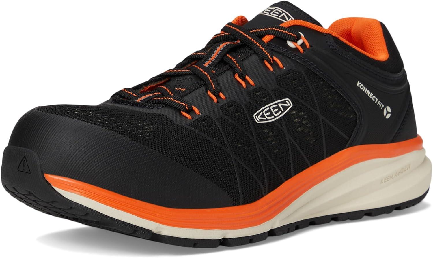 KEEN Utility Mens Vista Energy Low Height Sneakers Composite Toe Industrial Work Shoes(Black/Scarlet Ibis)