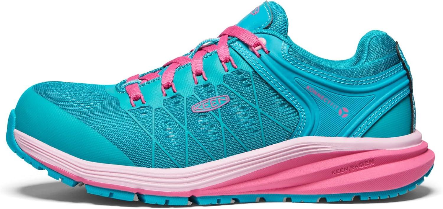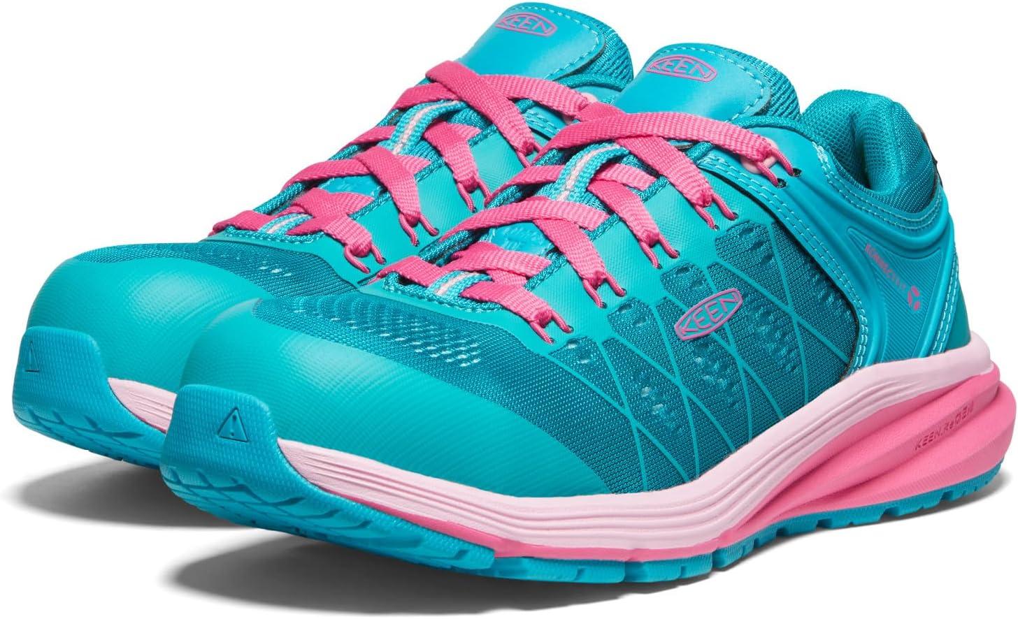 KEEN Utility Women’s Vista Energy Low Height Sneakers Composite Toe Industrial Work Shoes(Capri Breeze/Hot Pink)
