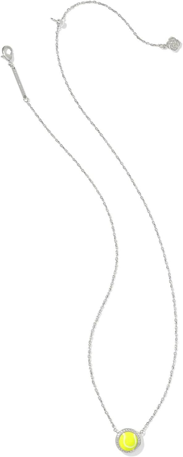 Kendra Scott Tennis Short Pendant Necklace, Fashion Jewelry for Women(RHODIUM – CHARTREUSE MAGNESITE)