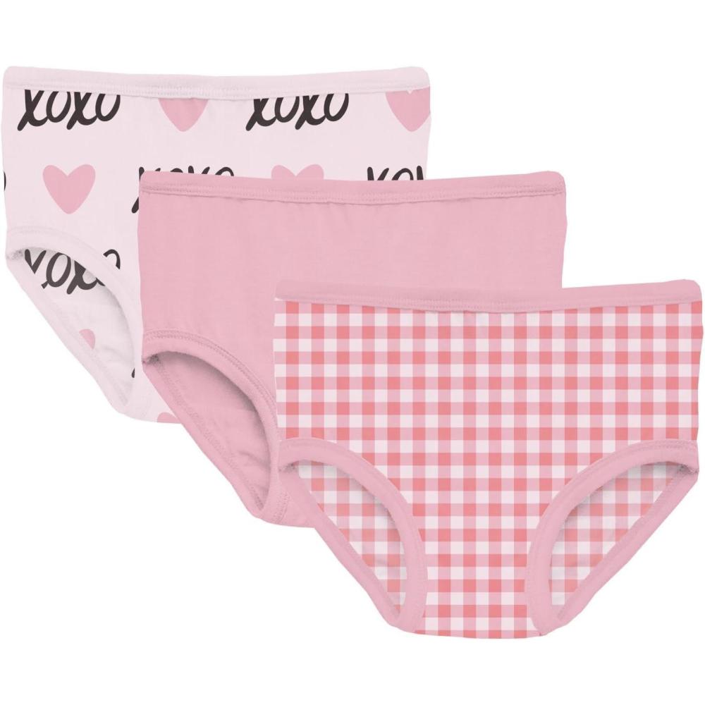 KicKee Girls Underwear, Set of 3, Prints and Solid Colors, Soft Girl Panties, Toddler to Big Kid, All Day Wear(Shrinking Violet Xoxo Cake Pop & Cake Pop Gingham)