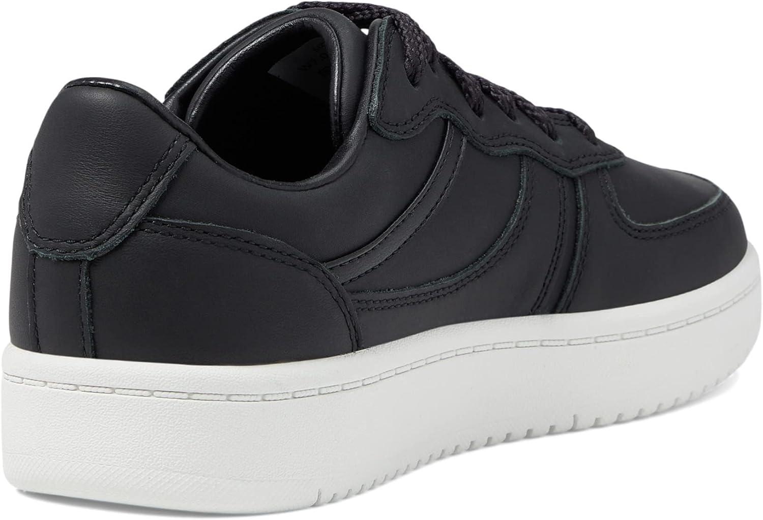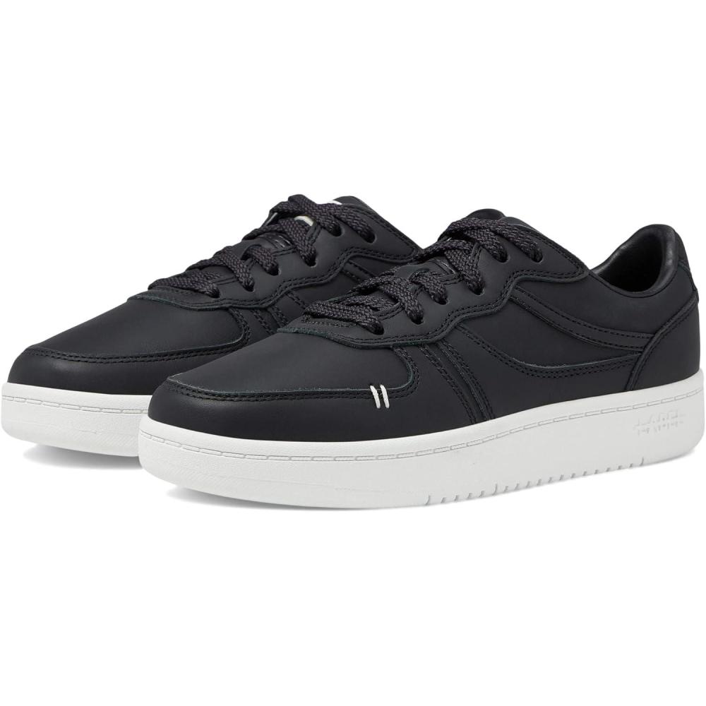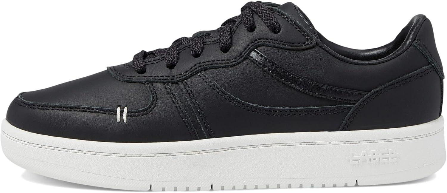 LABEL™ Go-to Low Lace-up Women’s Sneakers – Leather & Textile Construction – Round Toe – Flat Silhouette(Black/White)