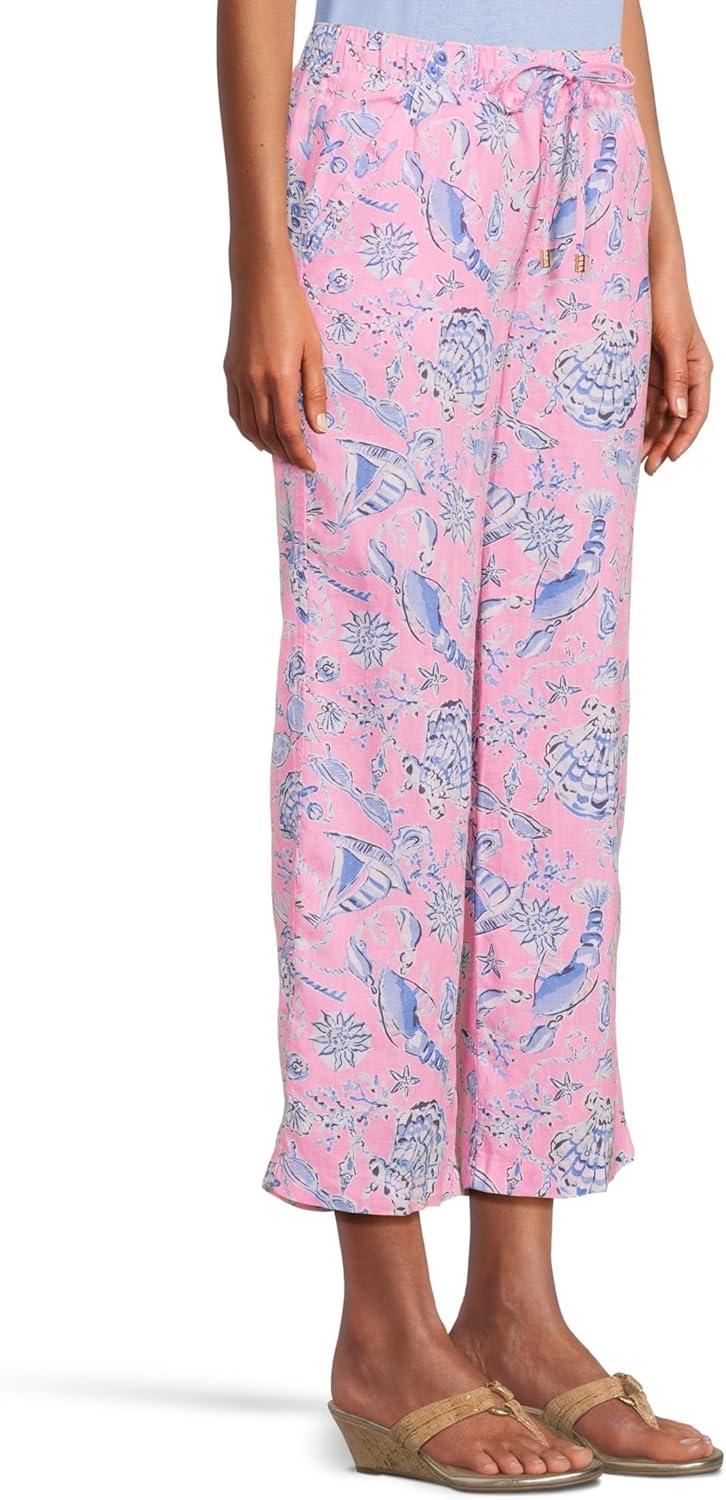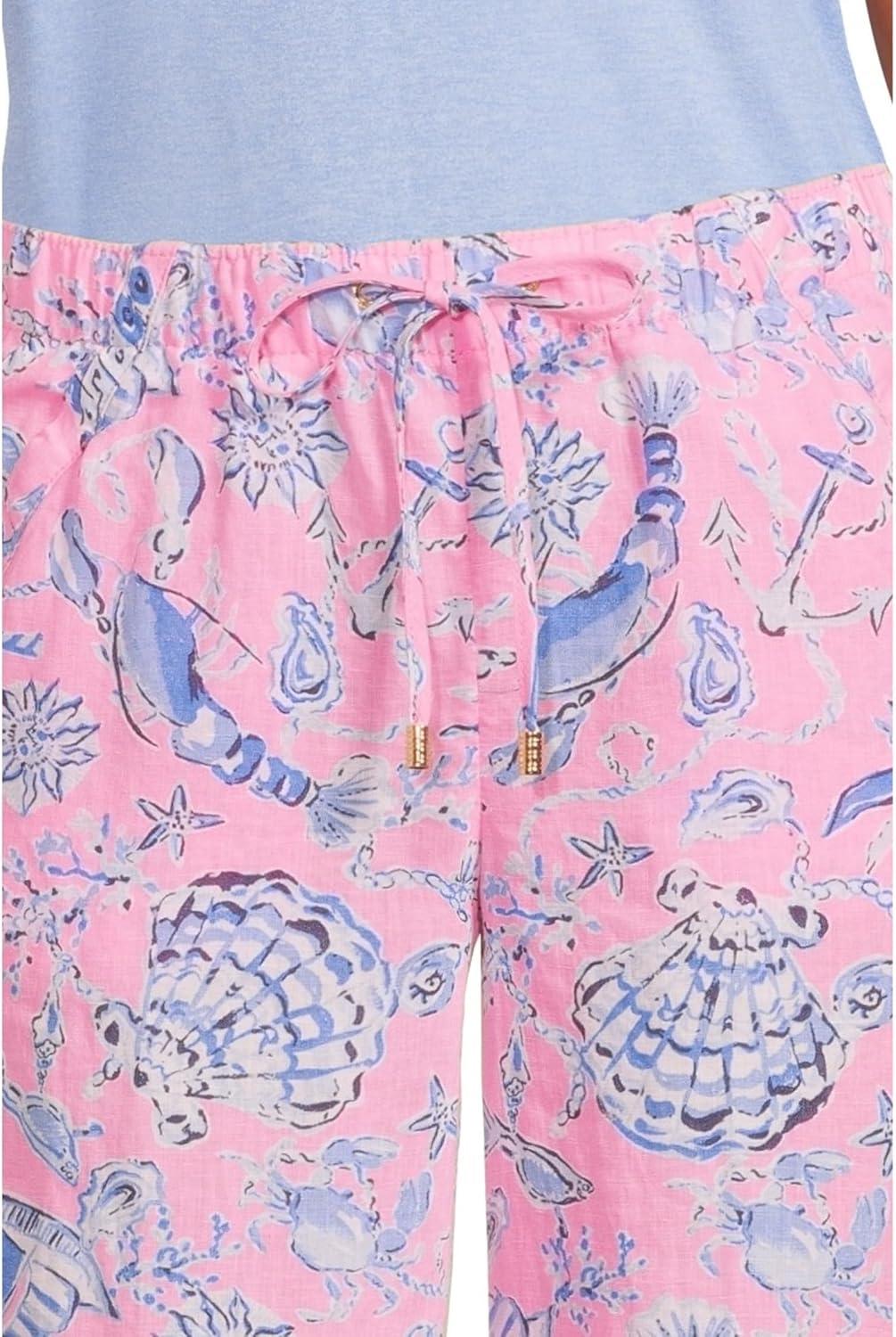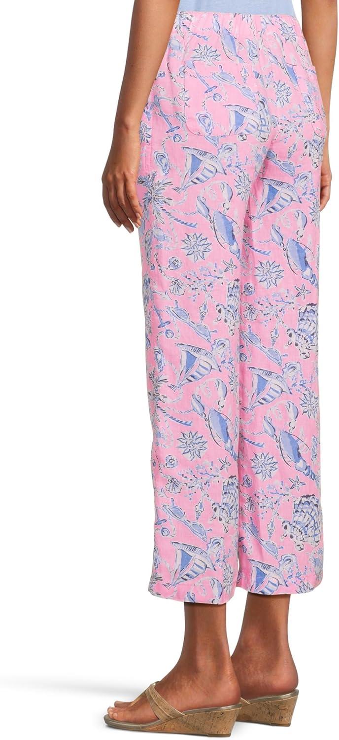 Lilly Pulitzer Women’s Brawley Linen Crop Pants(Rousseau Pink Barefoot Beachcombers)