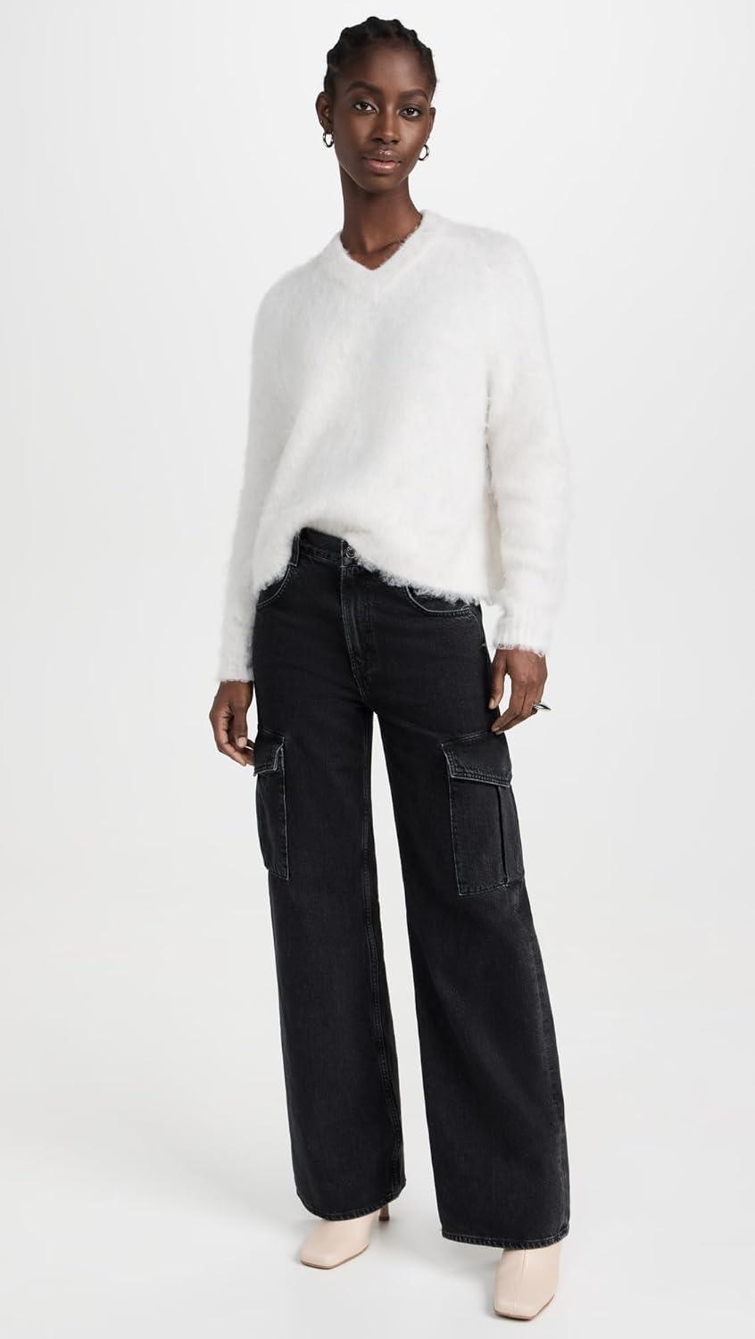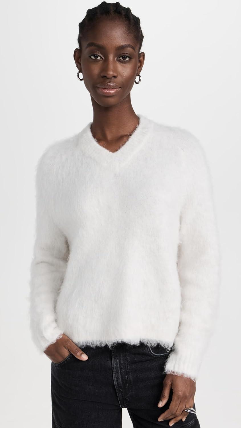 Madewell Women’s Brushed V Neck Sweater(Heather Smoke)