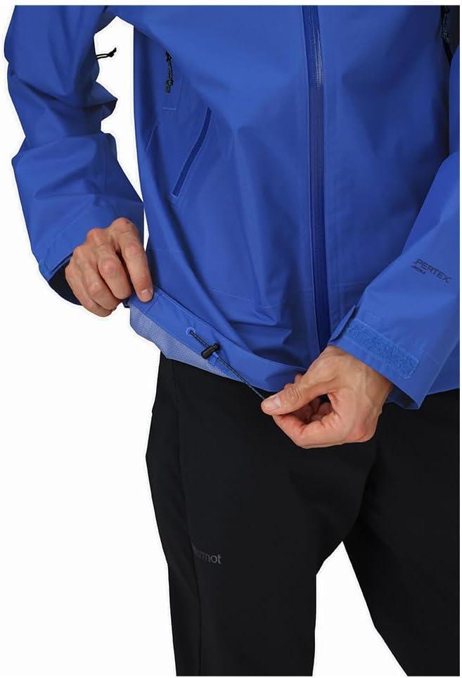 Experience the epitome of outdoor gear with the Marmot Men's Minimalist Pertex Jacket, a true embodiment of 'less is more'. Crafted with precision for the modern adventurer, this men's rain jacket waterproof design ensures you stay dry and comfortable on every journey. Constructed from 2.5L Pertex Shield fabric, it reduces weight without compromising on waterproofness, making it an ideal companion for both backpacking treks and daily errands. Its reduced seaming enhances durability while offering excellent packability, ensuring you have a lightweight yet robust waterproof shell jacket that fits effortlessly into your backpack. The attached hood, equipped with a peripheral cord, allows for easy adjustability, providing optimum coverage during sudden downpours. The front zipper closure is designed for convenience, while long sleeves with hook-and-loop closure cuffs offer a snug fit, keeping the elements at bay. Zipper hand pockets provide secure storage for essentials, and an elastic waist with a drawcord allows for a customized fit. Made from 100% post-consumer recycled polyester, this men's shell jacket waterproof is not only functional but also environmentally conscious. Whether you're navigating urban landscapes or exploring rugged trails, the Marmot Men's Minimalist Pertex Jacket is your ultimate rain shell men can rely on for unmatched protection and style.