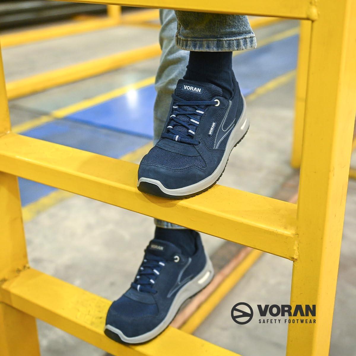 Men’s Comp Toe Work Sneaker Breathable Lightweight Comfortable Ergonomic EH Slip Resistant Safety Footwear for Warehouse & Manufacturing(Blue)