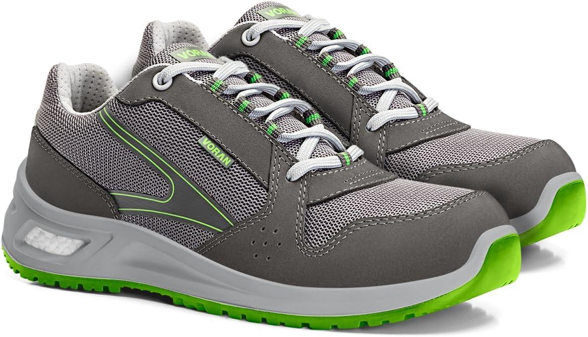 Men’s Comp Toe Work Sneaker Breathable Lightweight Comfortable Ergonomic EH Slip Resistant Safety Footwear for Warehouse & Manufacturing(Grey)