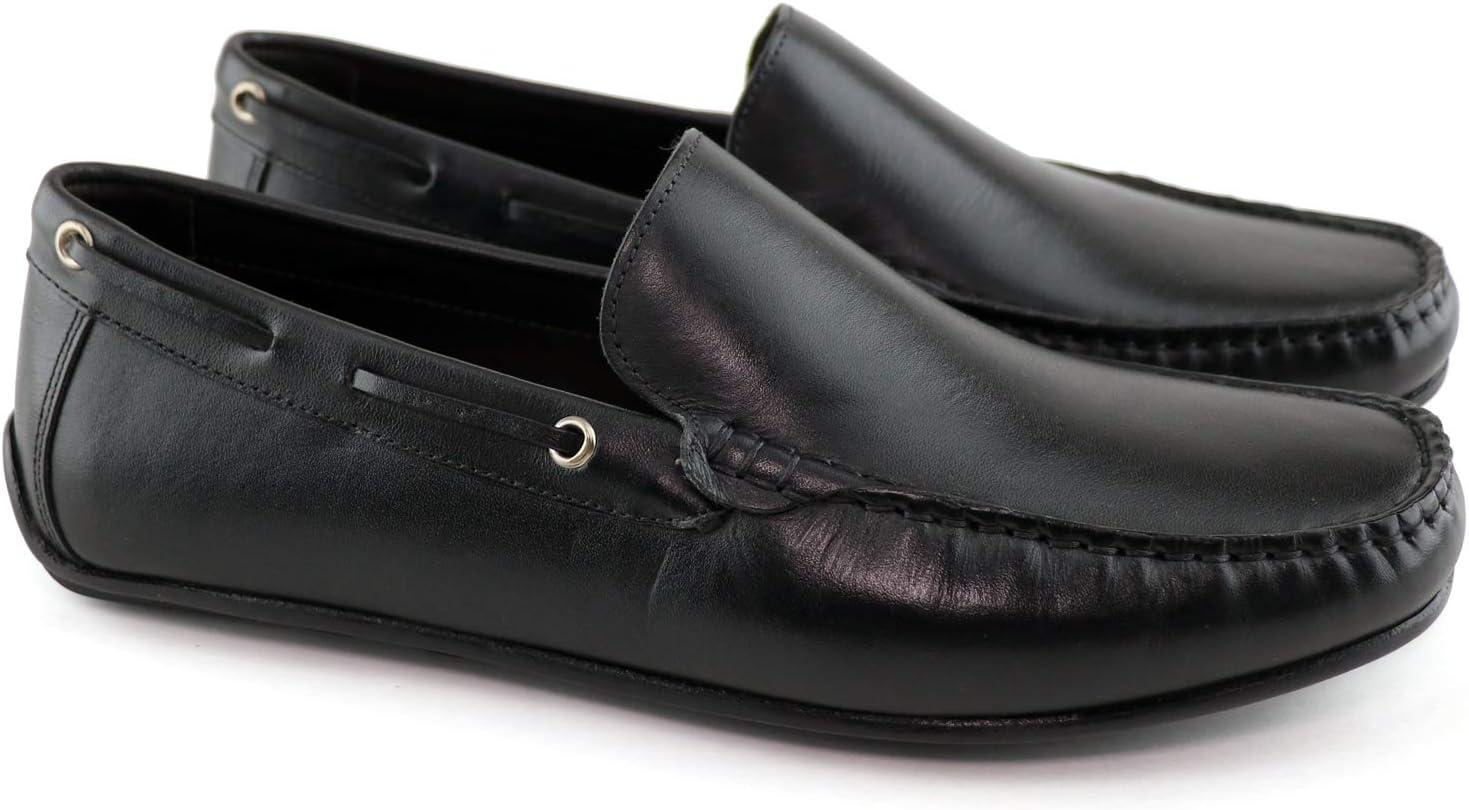 Men’s Genuine Leather Casual Slip On Venetian Loafers(Black Napa)