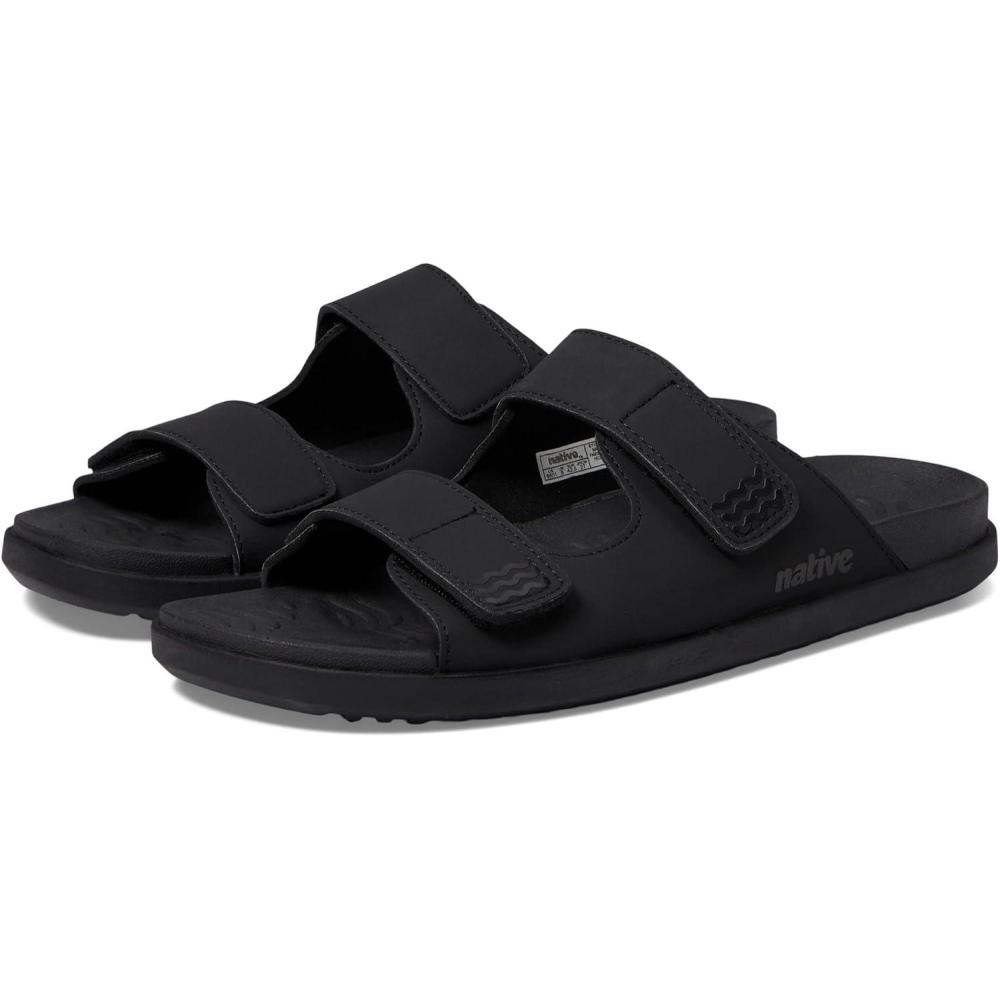 Native Shoes Frankie Sugarlite Sandal for Men, and Women – Satin PU and EVA Upper, Hook-Loop Closure, Round Toe and Slip-On Style(Jiffy Black/Jiffy Black)