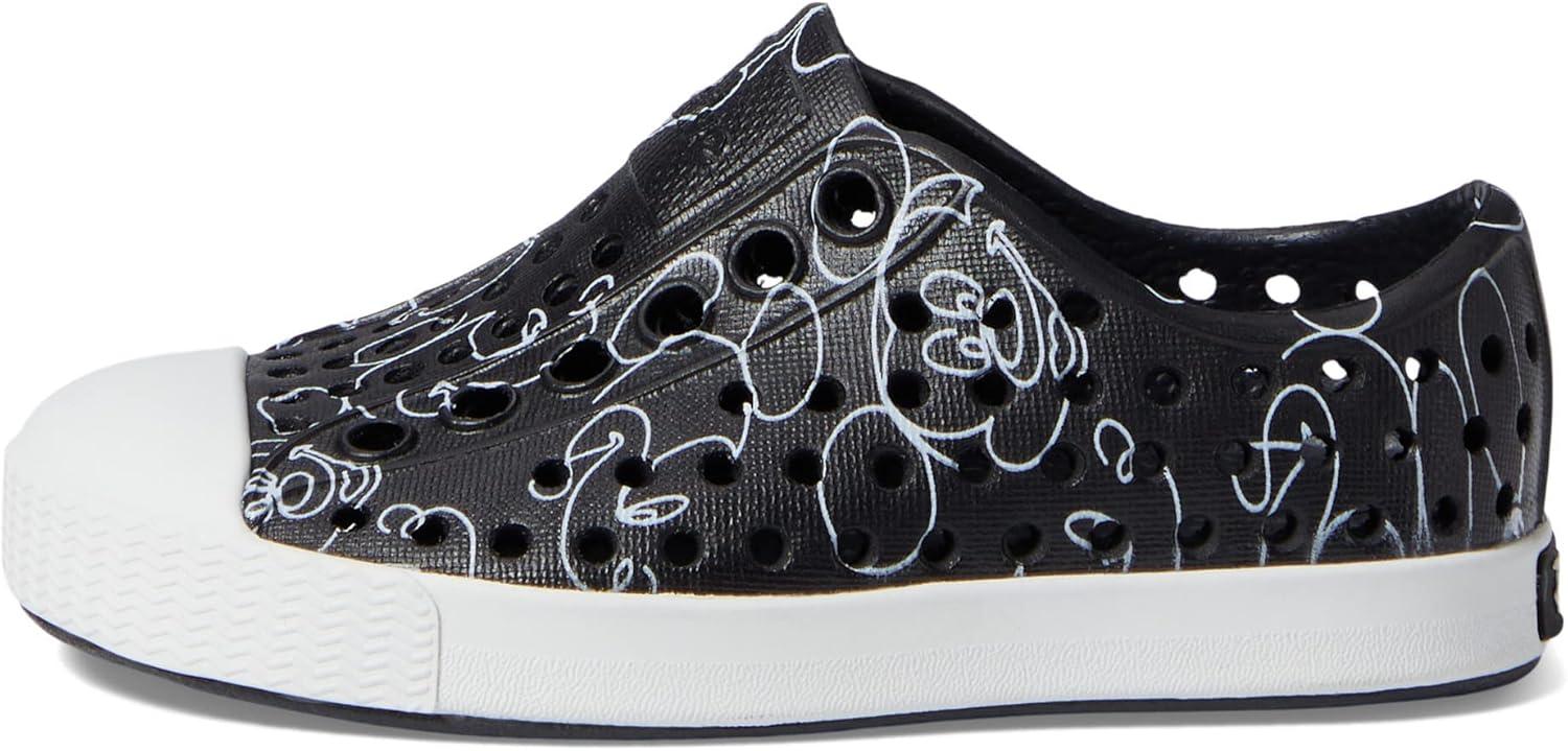 Native Shoes Unisex-Child Jefferson Print Junior Sneaker(Jiffy Black/Shell White/Mickey Doodle All Over Print)