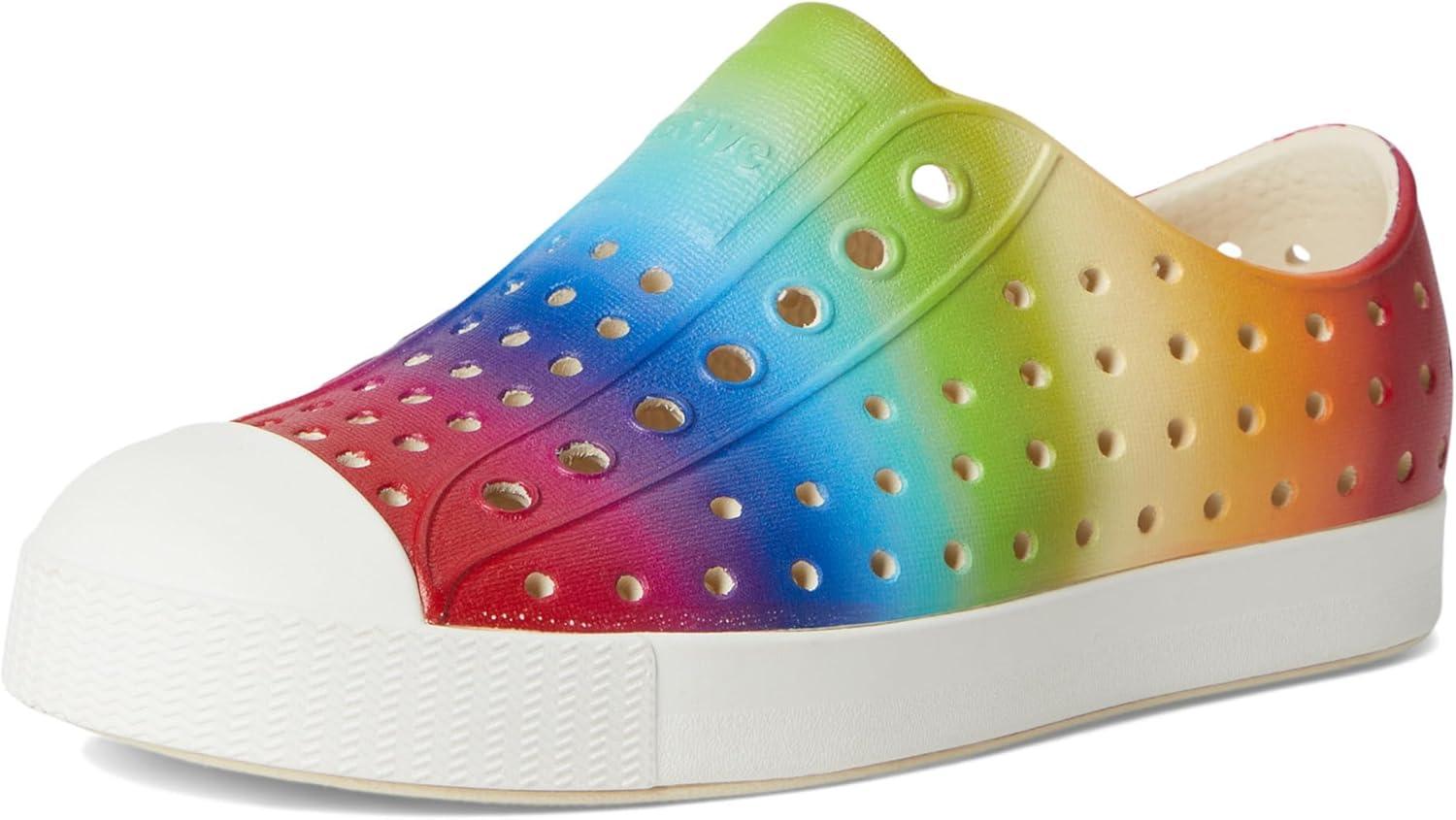 Native Shoes Unisex-Child Jefferson Print (Little Kid/Big Kid)(Bone White/Shell White/Rainbow Gradient)