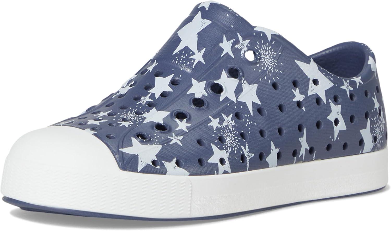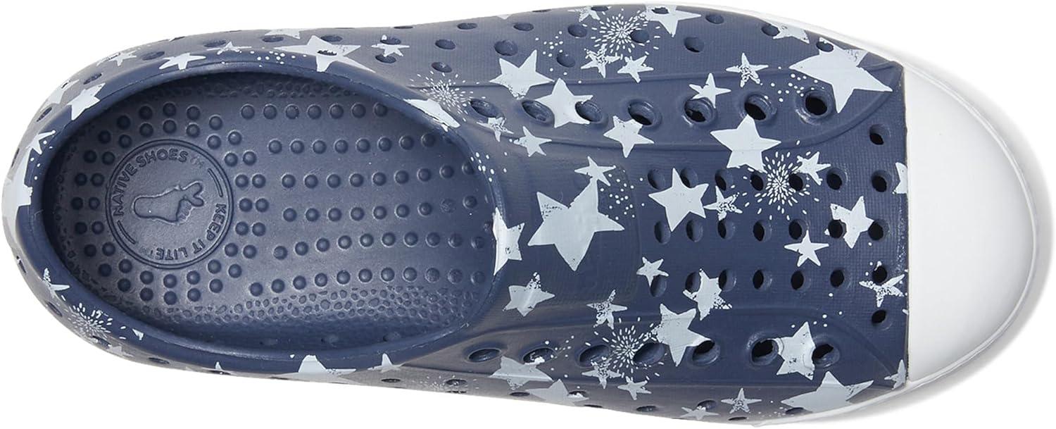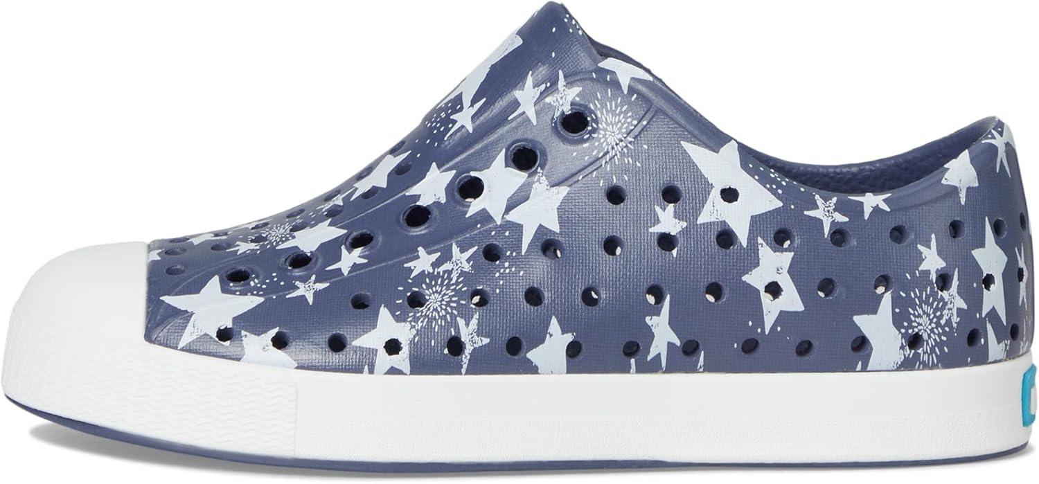 Native Shoes Unisex-Child Jefferson Print (Little Kid/Big Kid)(Deep Sea Blue/Shell White/Firework Stars)