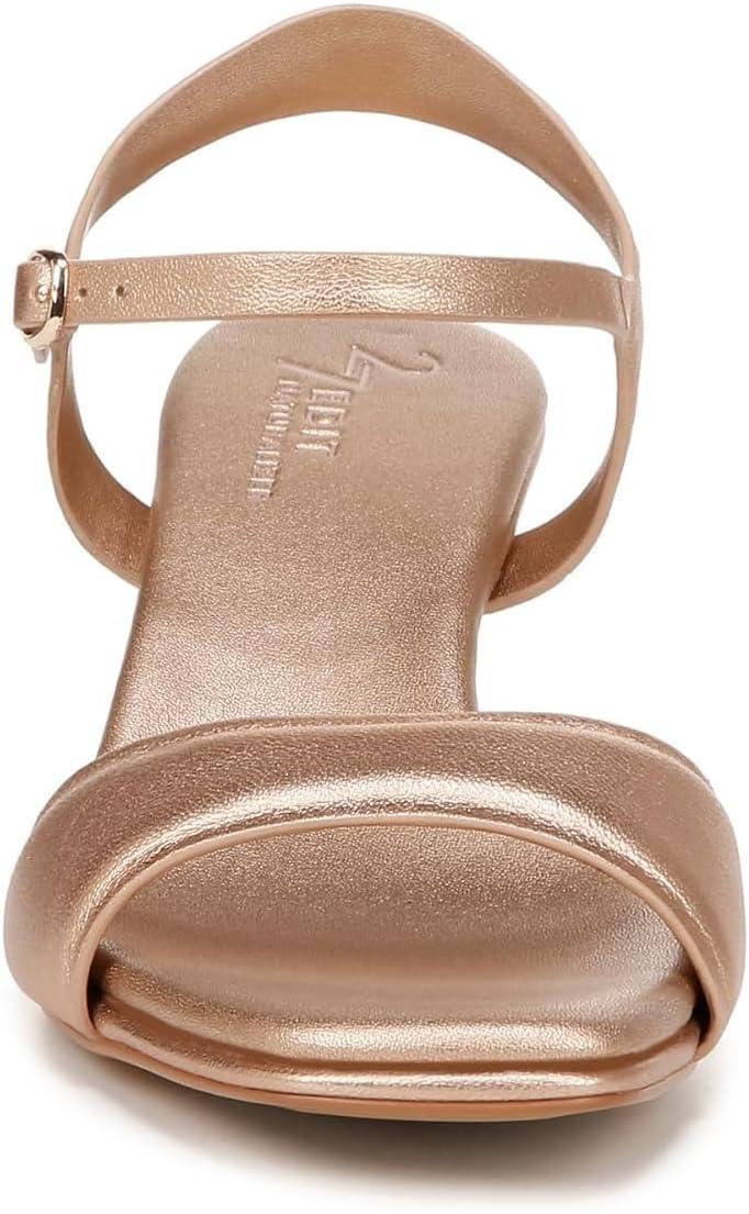 Featuring our new Contour footbed // Pencil these heels from 27 EDIT Naturalizer into your plans. They go great with everything on your schedule. Gorgeous dress sandals with padded vamp strap. Premium leather, metallic leather or suede upper with an open toe. Adjustable buckle closure. New Contour footbed: an extra layer of padding for next-level comfort. Signature Contour+ Comfort technology for a true, all-day wear experience. Smooth lining and insole for natural comfort and breathability. Extra cushioning for added layer of unrivaled comfort. Proprietary rubber outsole design provides enhanced flexibility and shock absorption. 2 3/8 inch heel. Consciously packaged: 100% of our shoe boxes are made of 80% recycled paper + soy-based ink. Designed using some environmentally preferred materials. WHY YOU’LL LOVE IT: Forever elegant silhouettes with all day wearability, available in an inclusive range of sizes and widths. Designed to the contours of a woman’s foot. The Beautiful Fit. Since 1927.