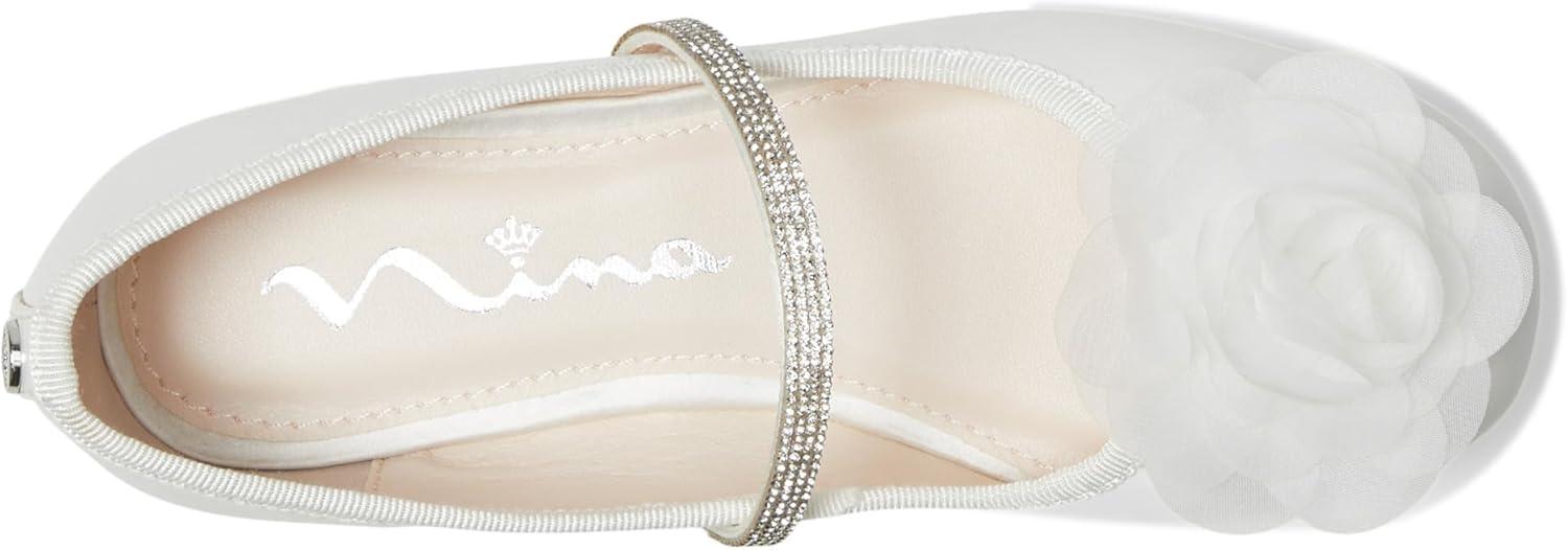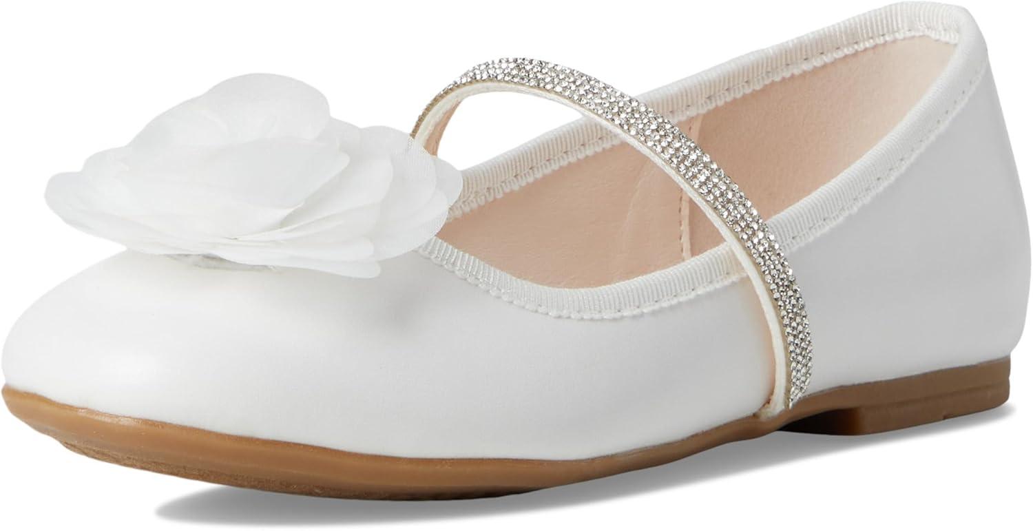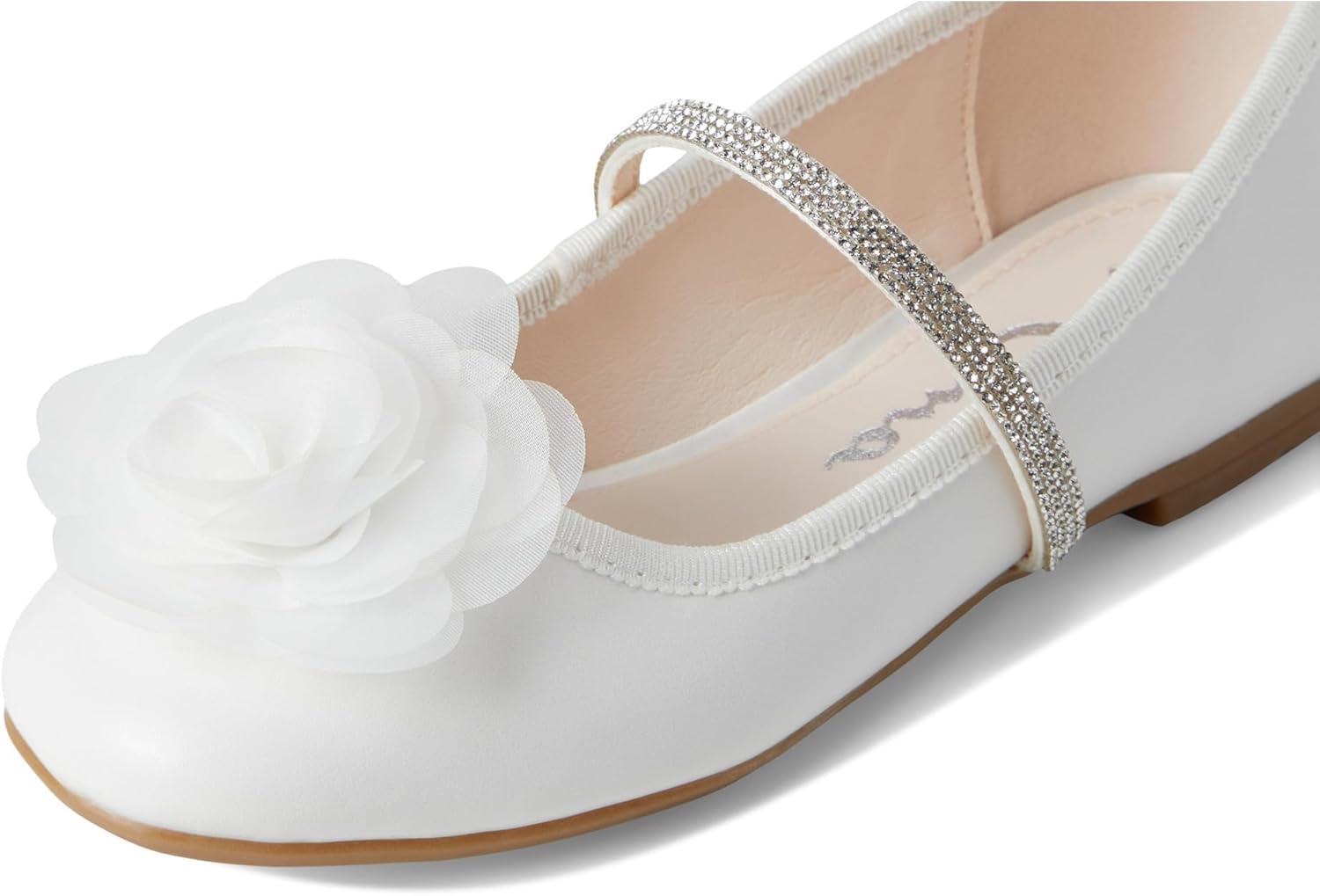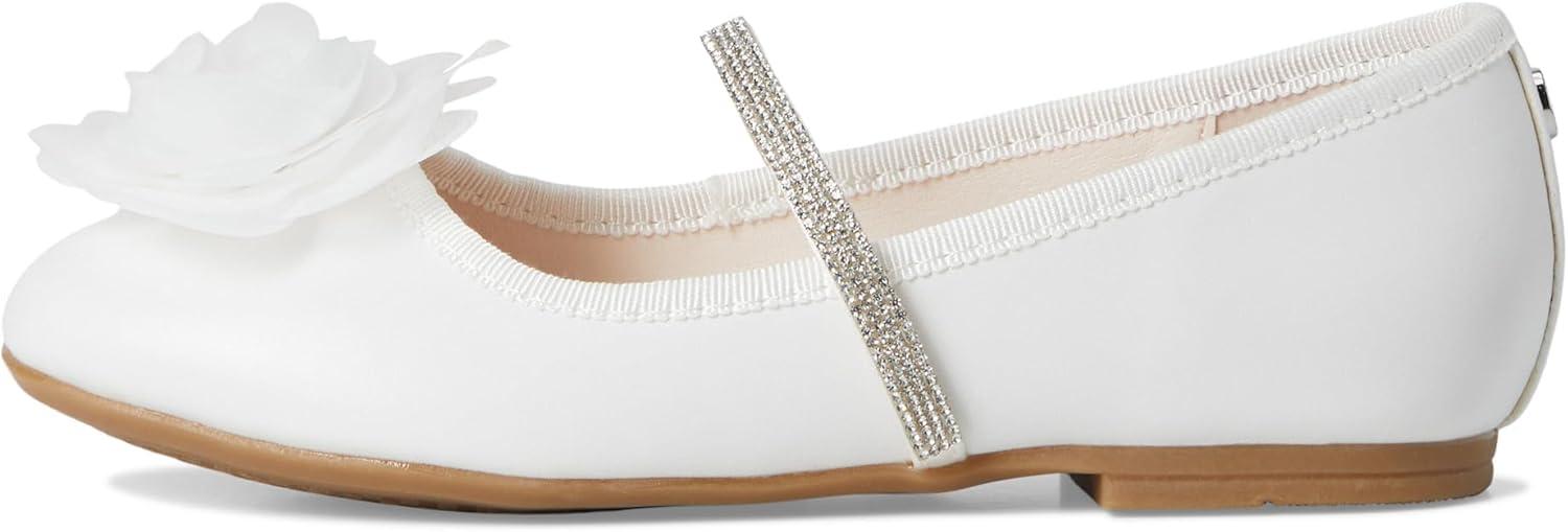 NINA Baby-Girl’s Jory (Little Big Kid) Ballet Flat W/Flower(White Smooth)