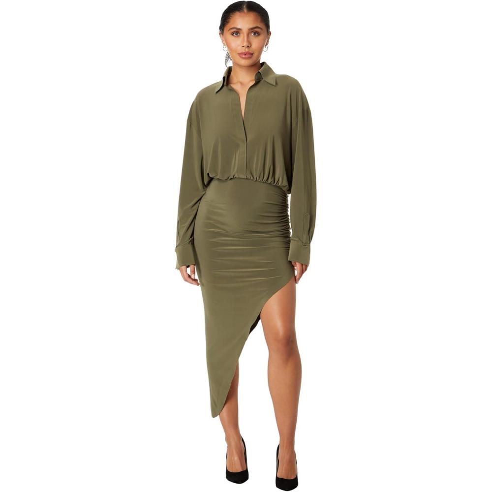 Norma Kamali Women’s Oversized Boyfriend Nk Shirt Side Drape Gown(Military)
