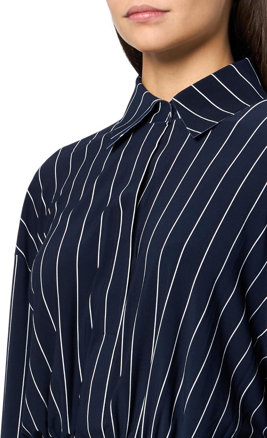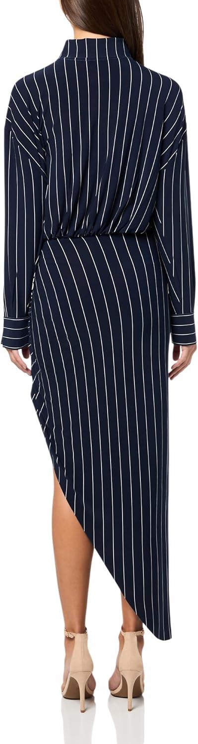Norma Kamali Women’s Oversized Boyfriend Nk Shirt Side Drape Gown(True Navy Pinstripe)