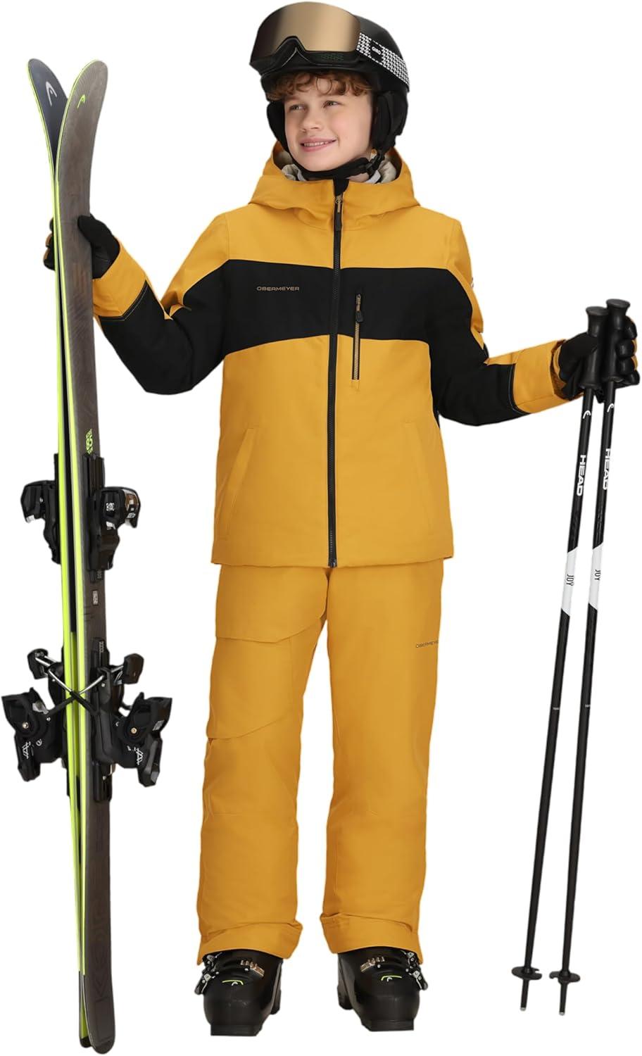 Meet the Obermeyer Kids Fleet Jacket: the ultimate sidekick for all your mountain adventures! With a playful style and all-mountain flair, this jacket keeps you warm and dry with its 10k/10k waterproof and breathability ratings. It's insulated for those extra-chilly days and comes packed with a snap-away powderskirt to keep snow out, plus a bunch of functional pockets for stashing your gear. Hit the slopes in style and have a blast! Full-Motion articulation.. Skier Critical seam sealing. Attached hood, fleece-lined collar, and long sleeves. Zippered front closure. Zippered chest pocket. Zippered handwarmer pockets. Snap-Away powderskirt. Fleece inner cuffs. Interior windguard. Interior pocket(s). Goggle cloth. Straight hem. YKK zipper(s). 100% polyester. Machine washable. Imported.