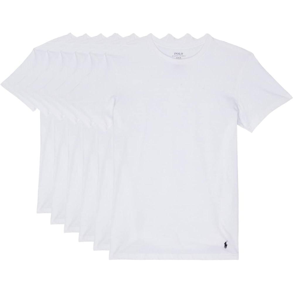 POLO RALPH LAUREN Classic Fit Crew Neck T-Shirts – Pack of 6 – 100% Cotton – Straight Hem – Short Sleeves(6 White/Cruise Navy)