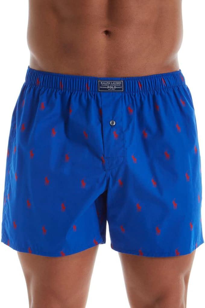 Polo Ralph Lauren Men’s All Over Pony Player Woven Boxer(Cruise Navy/Red & White Aopp)