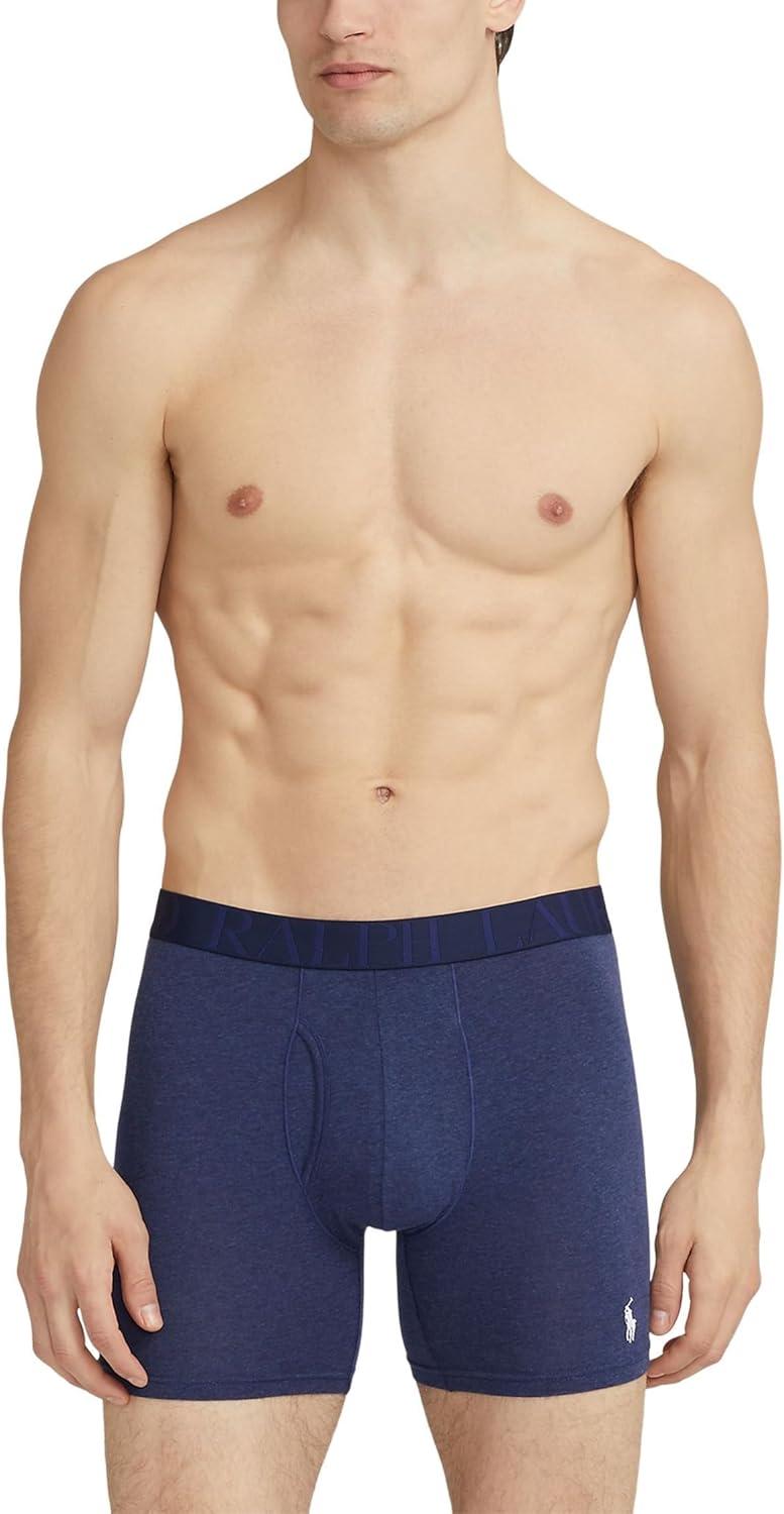 POLO RALPH LAUREN mens Classic Fit Stretch Boxer Brief 3-pack(Spring Navy Heather/Andover Heather/Indigo Player Camo)