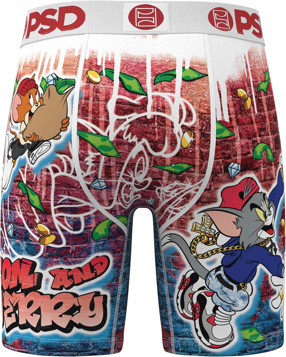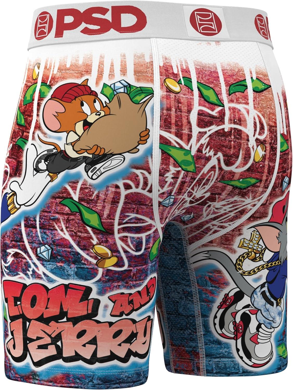 PSD Mens Boxer Briefs – Cartoons, Standard Length Underwear Pack & Singles, Breathable Moisture Wicking Boxer Briefs for Men(T&j Trap)